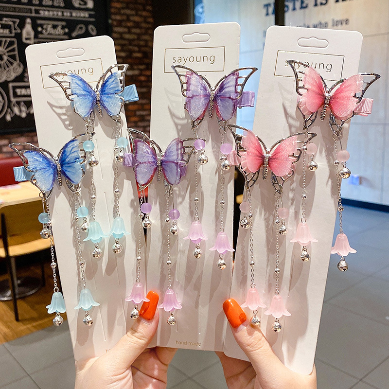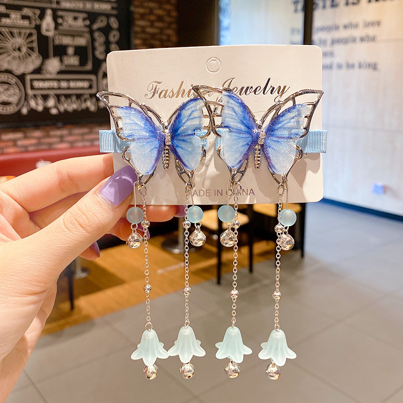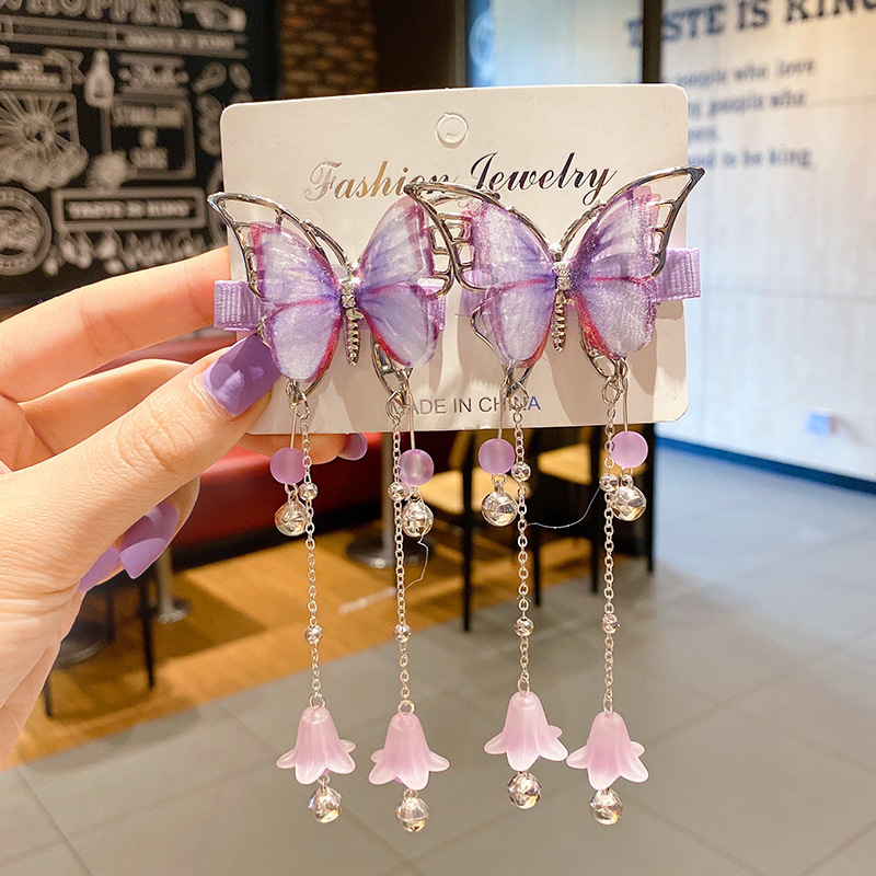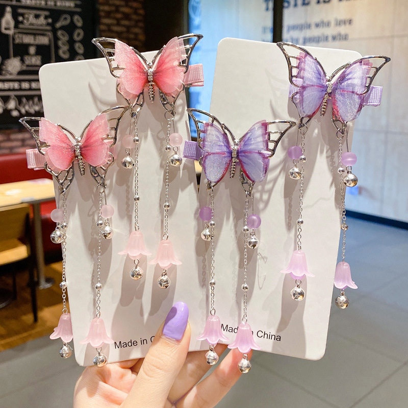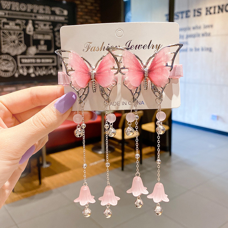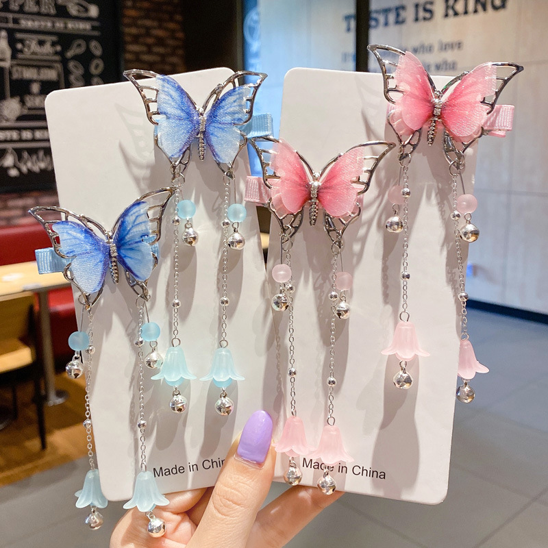 Bowknot Small Bells Tassel Rhinestone Hairpin