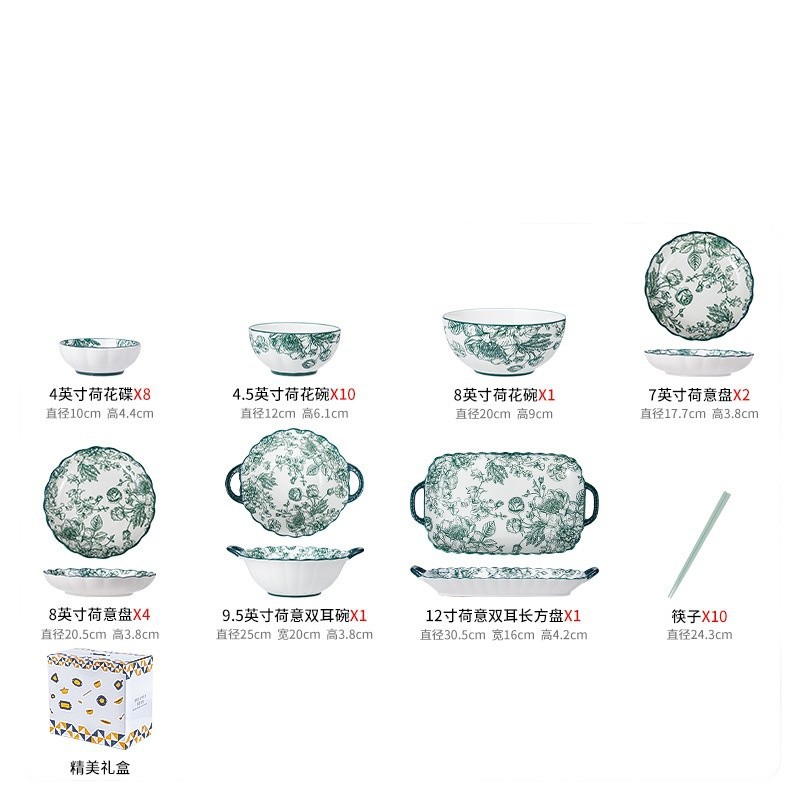 Product information:Color: 4 people food set of 15-Rose Queen green, Material: Ceramic Craft: underglaze