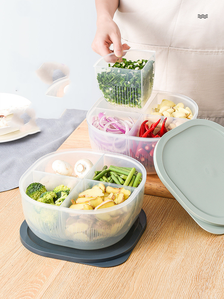 Color: night sky blue [large four-compartment crisper], coral red [large four-compartment crisper], mint green [large four-compartment crisper], night sky blue [drain basket with a double-layer], coral red [drain Basket with a double layer], mint green [drain basket with a double layer], night sky blue [3 piece set], coral red [3 piece set], mint green [3 piece set], mixed color [small 3 piece set 】