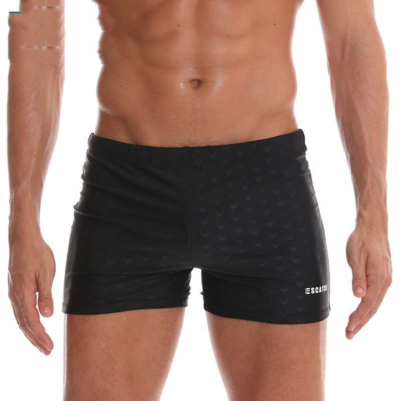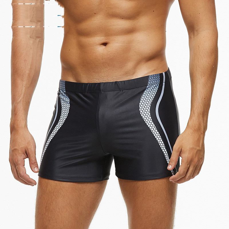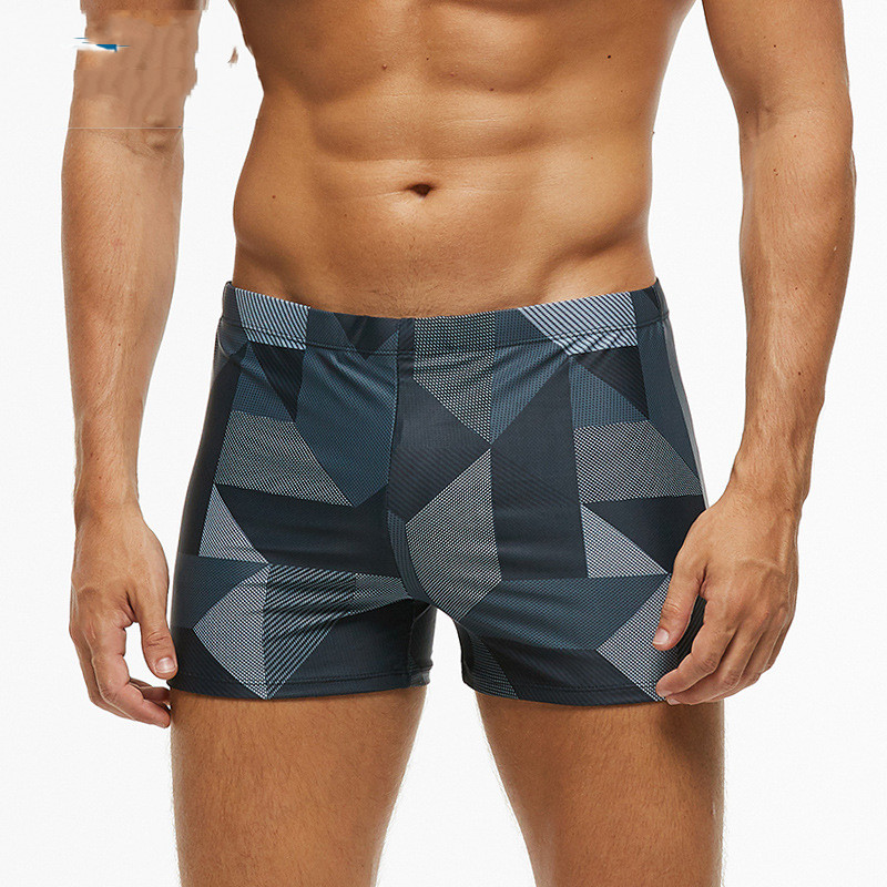 Color: grey geometric swimming trunks, black sharkskin swimming trunks, blue dotted swimming trunks, black dotted swimming trunks