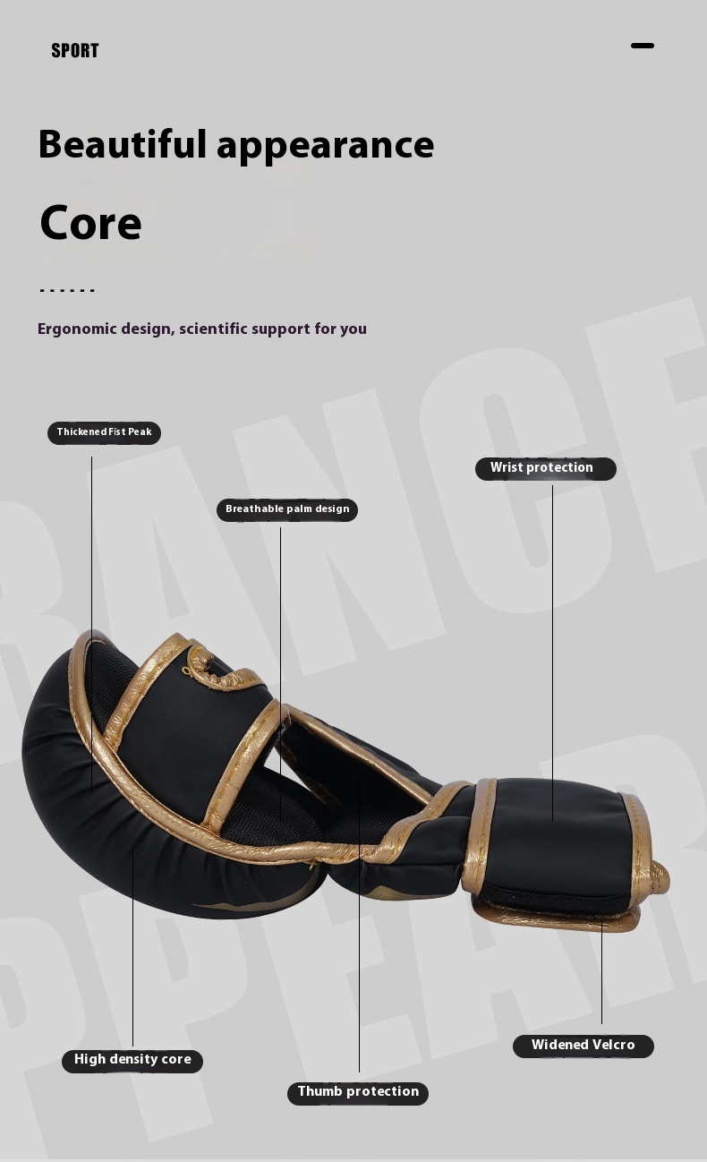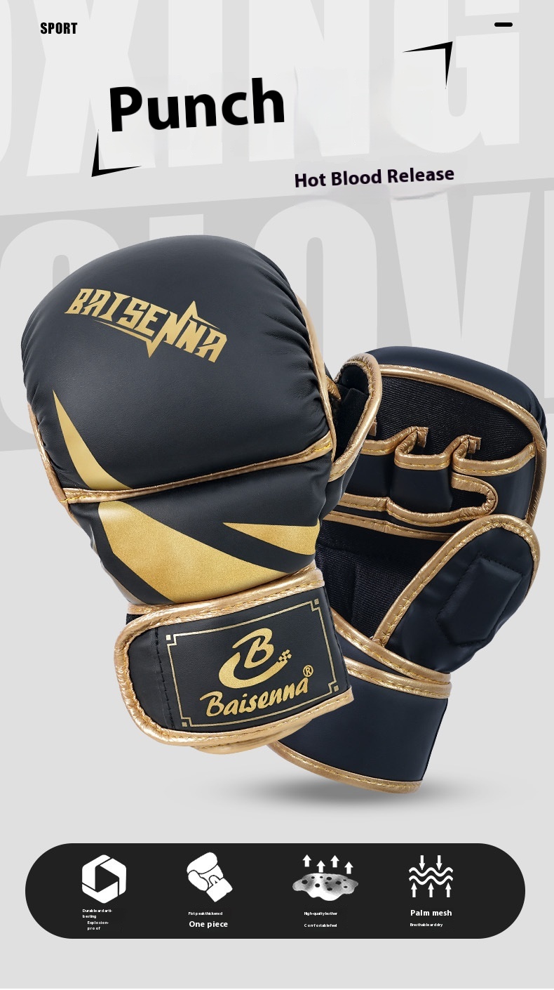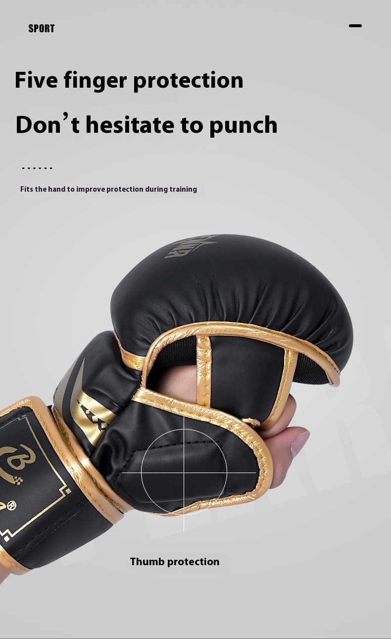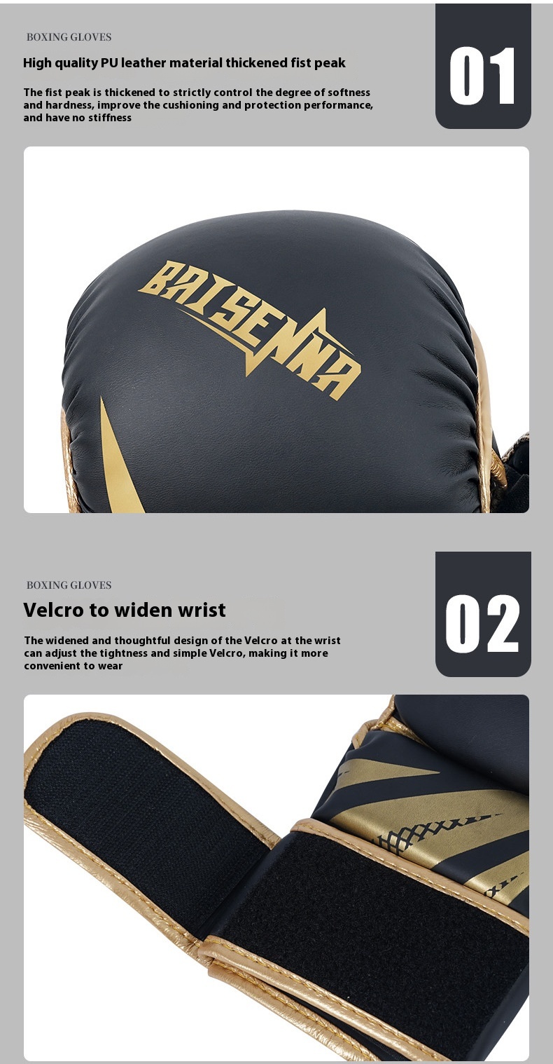 Color: Adult five finger black gold boxing gloves, adult five finger platinum boxing gloves, adult five finger black boxing gloves, adult five finger black and white boxing gloves, children's five finger black gold boxing gloves, children's five finger platinum boxing gloves, children's five finger black boxing gloves, children's five fingers black and white boxing gloves