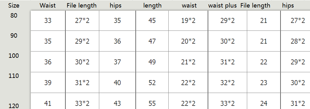 Suitable height: size 80, size 90, size 100, size 110, size 120