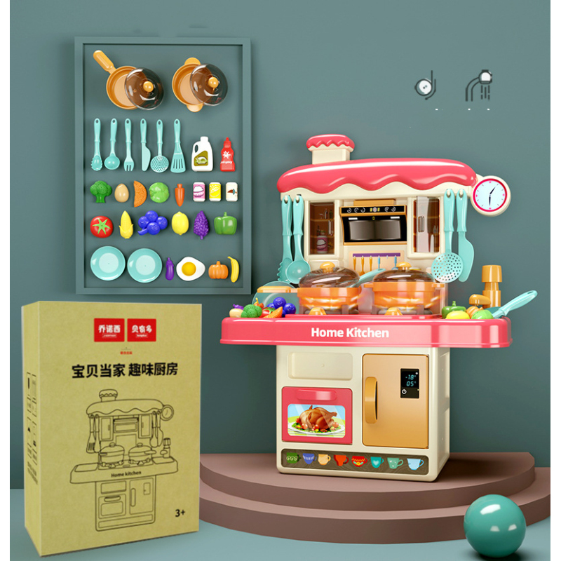 Color: (sound and light/water outlet) medium 43cm kitchen table 31-piece set-pink, (sound and light/water outlet) medium 43cm kitchen table 31-piece set-blue,