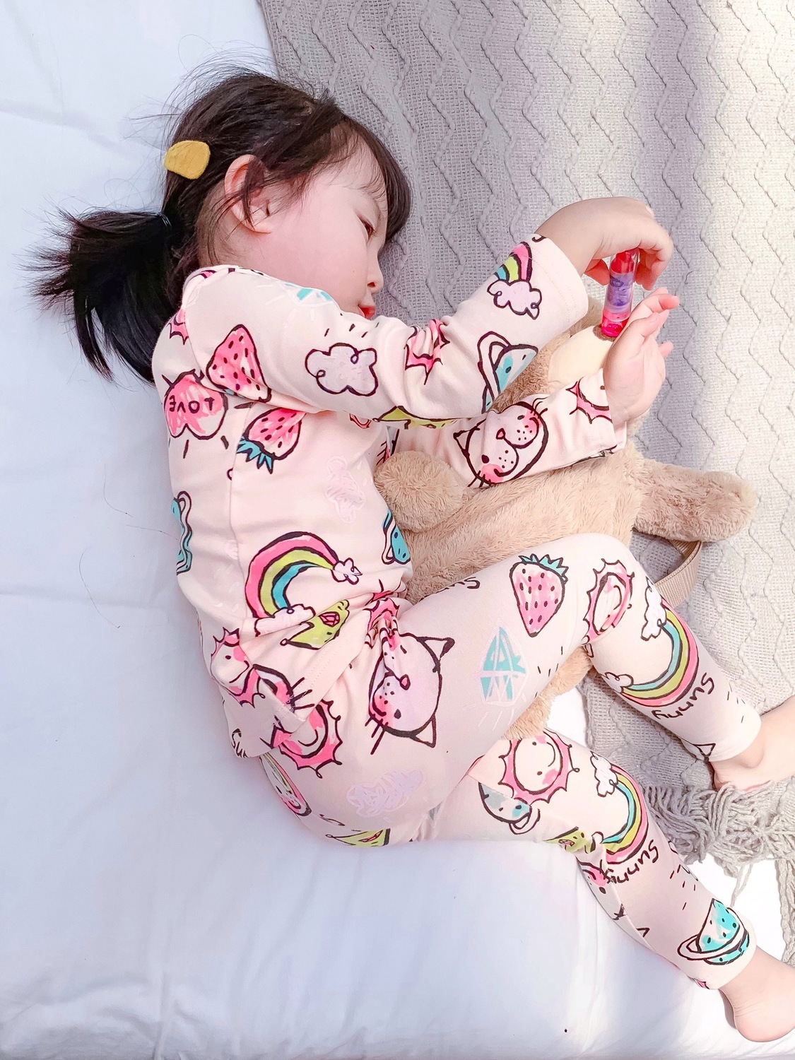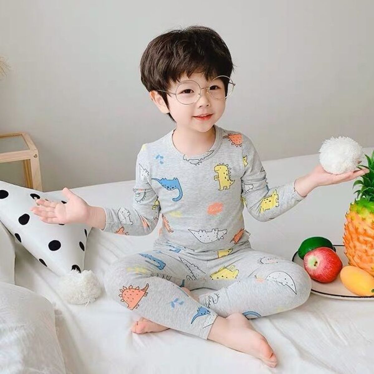 Color: pink flower long sleeve suit, green rabbit long sleeve suit, rainbow cat long sleeve suit, yellow floret long sleeve suit, blue bear long sleeve suit, green car long sleeve suit, gray dinosaur long sleeve suit
