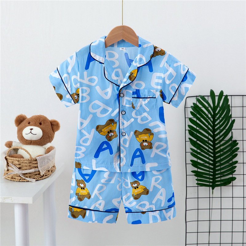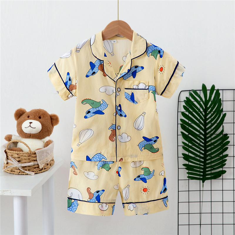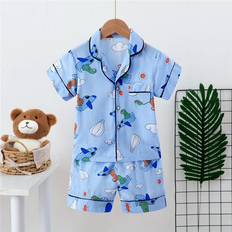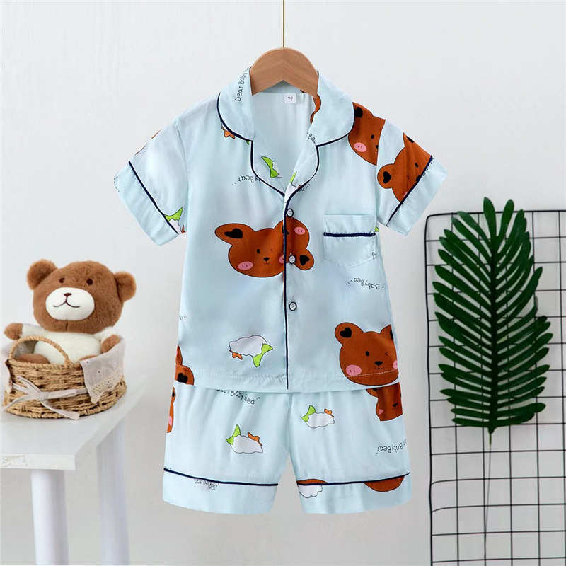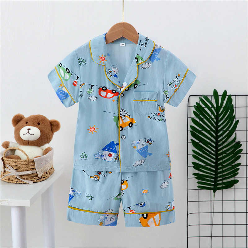 Boys And Girls Faux Silk Cardigan Pajamas Short Sleeve Set