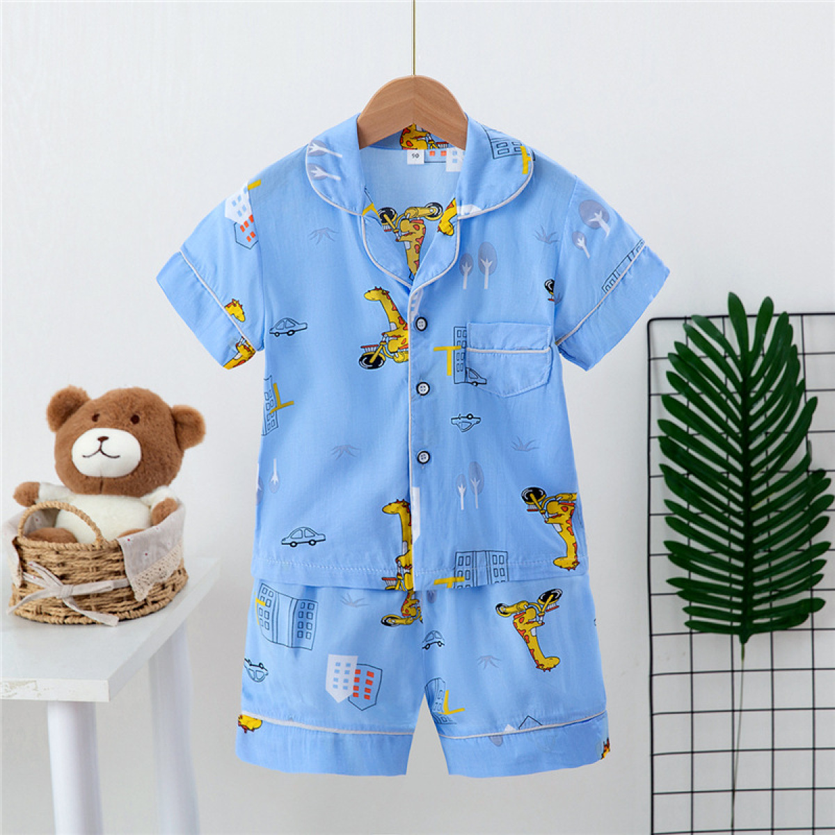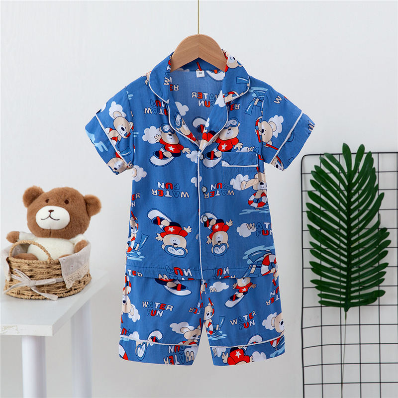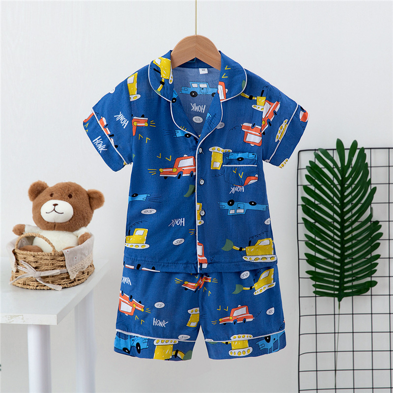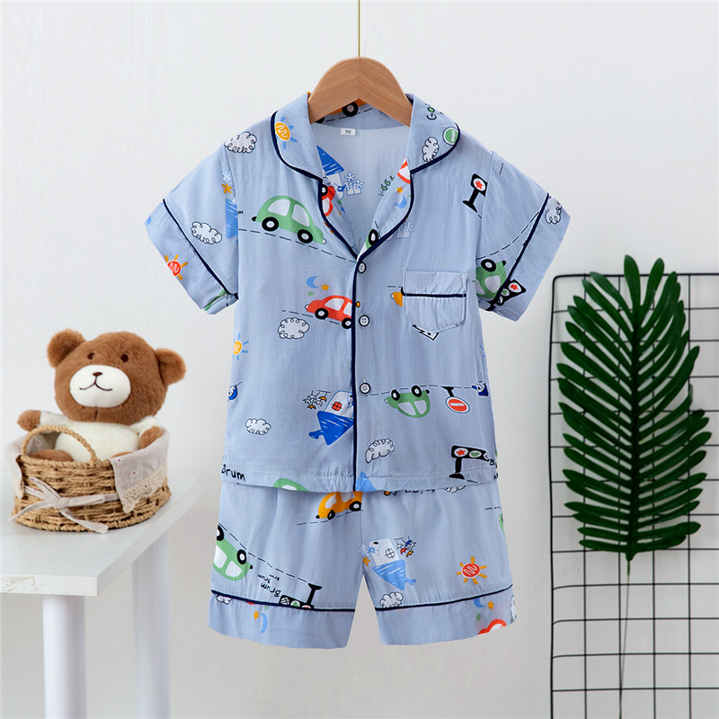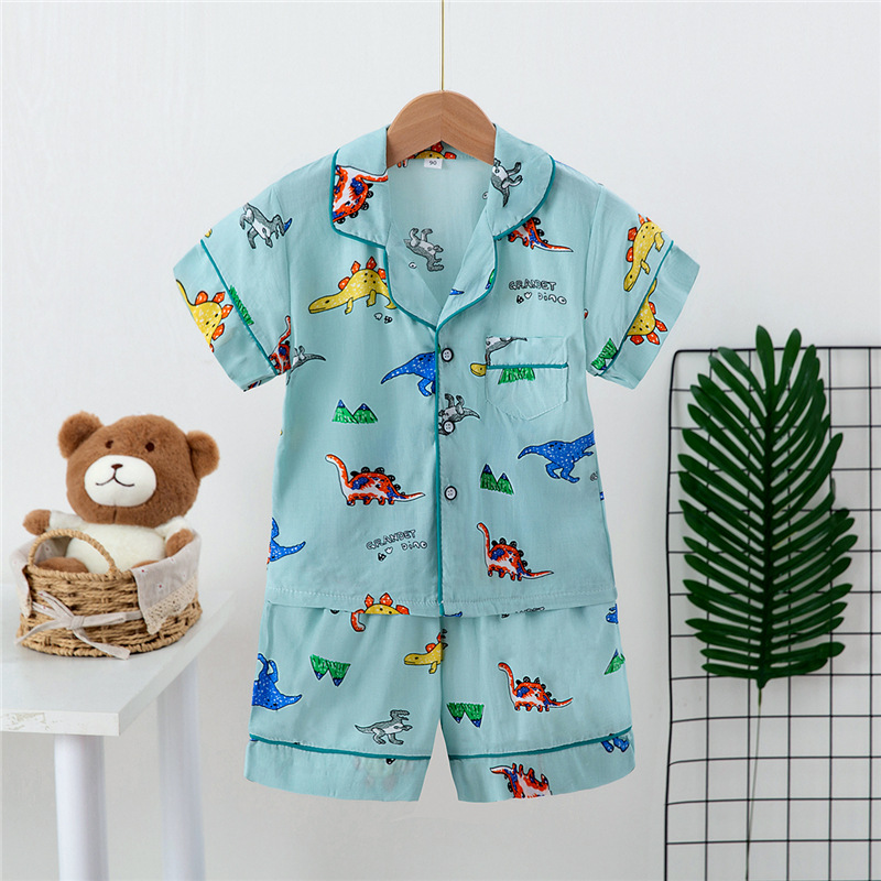 Boys And Girls Faux Silk Cardigan Pajamas Short Sleeve Set