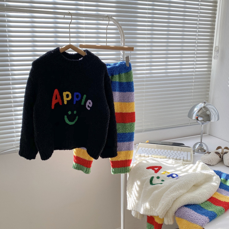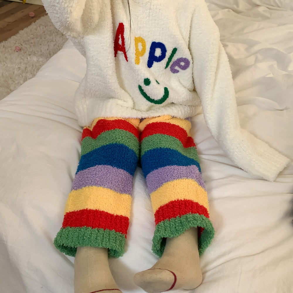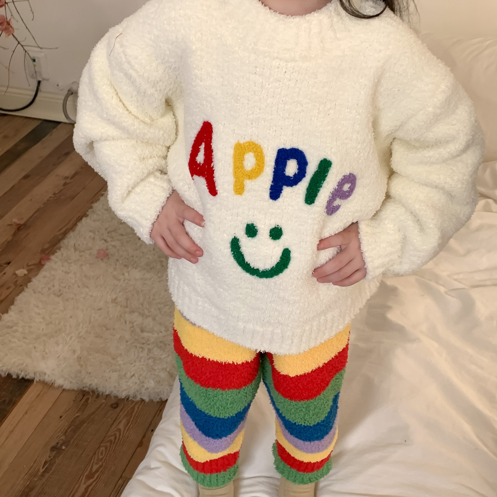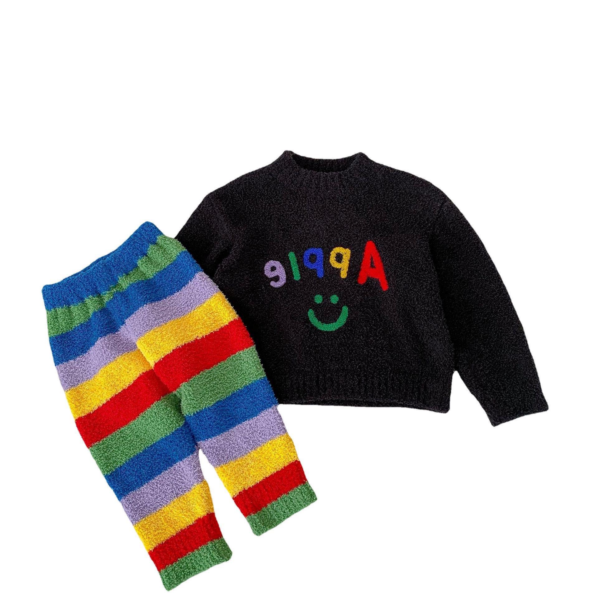 Boys And Girls Letters Rainbow Bar Pajamas Suit