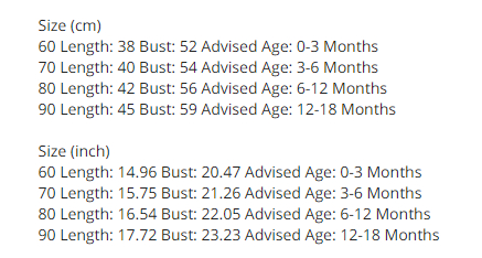Size Information: