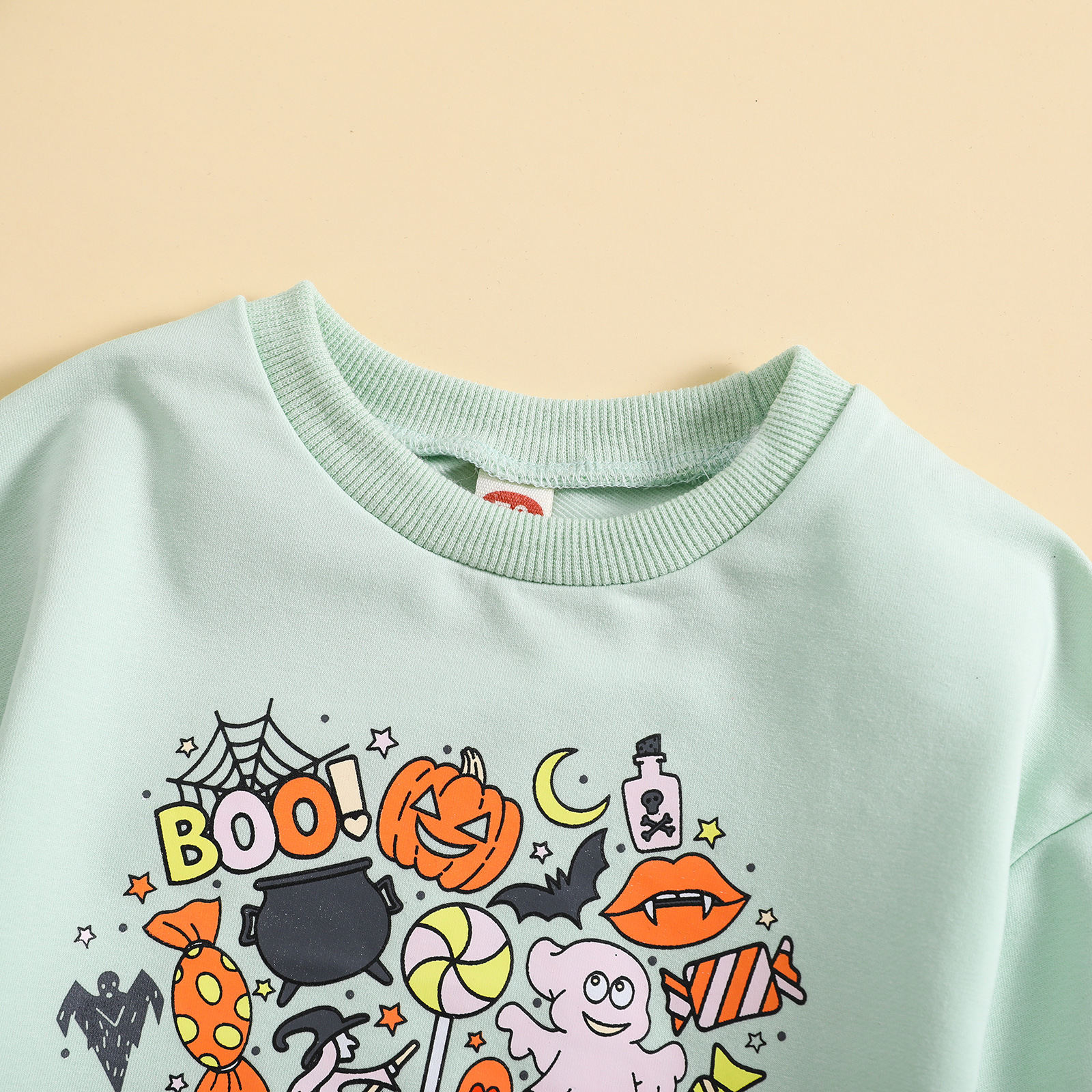 Color: light gray, apricot, green, caramel
