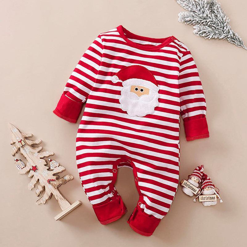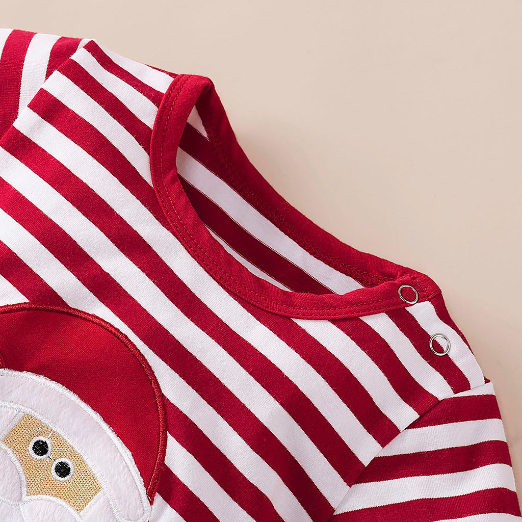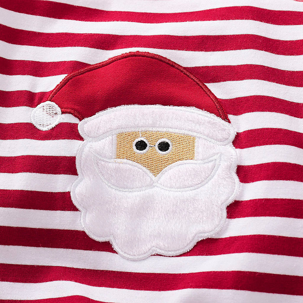 Boys and girls striped embroidery Santa Claus romper
