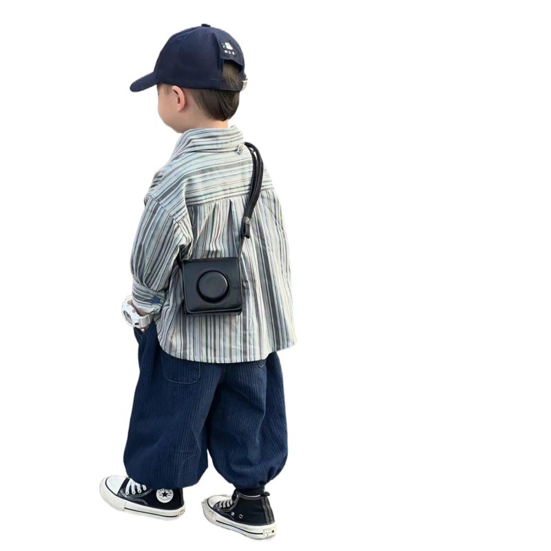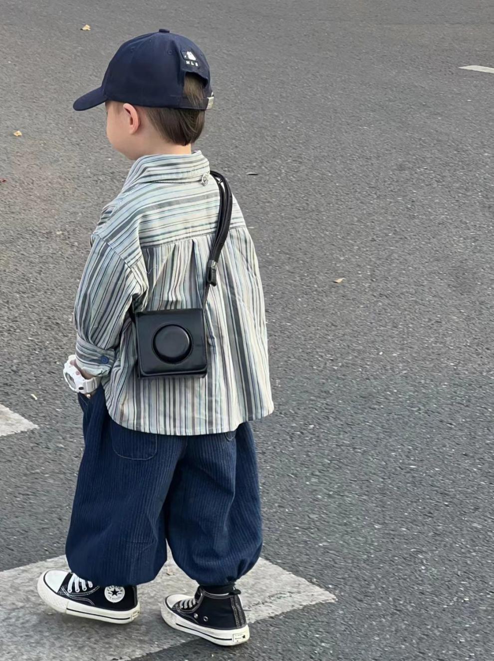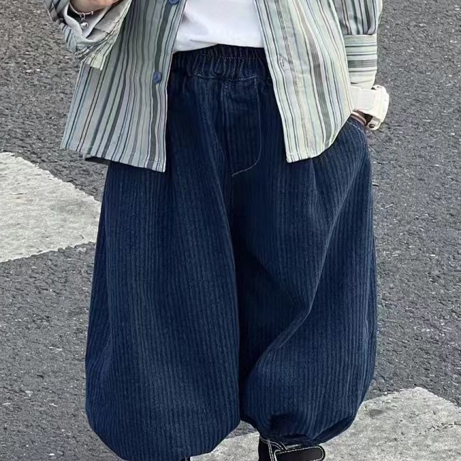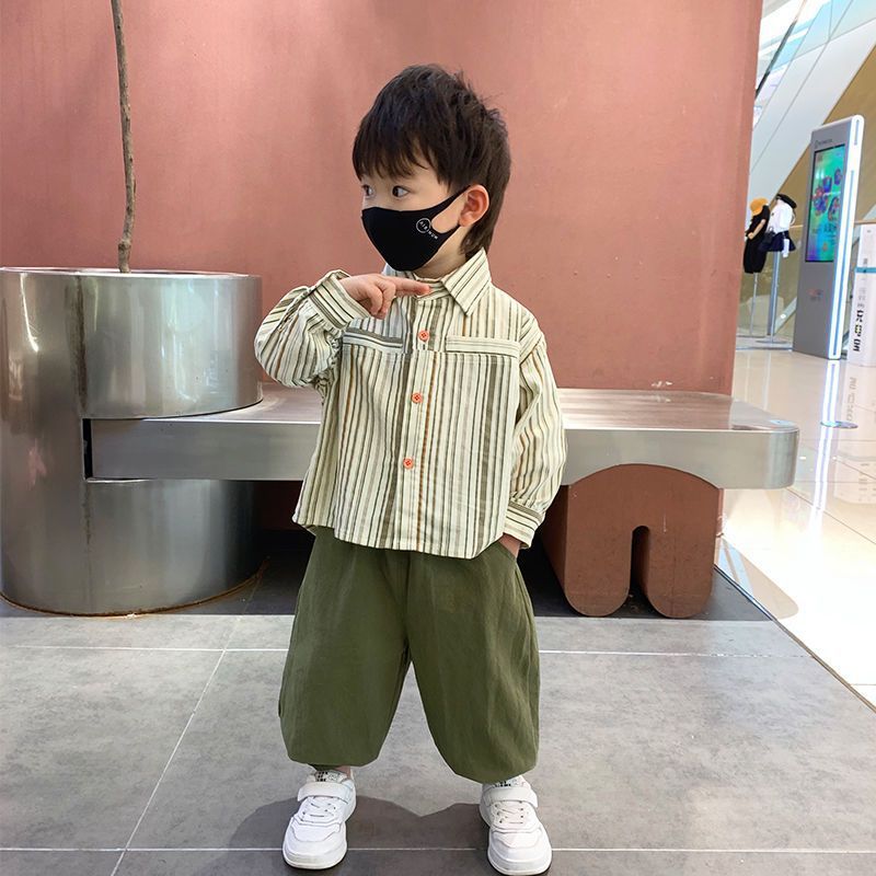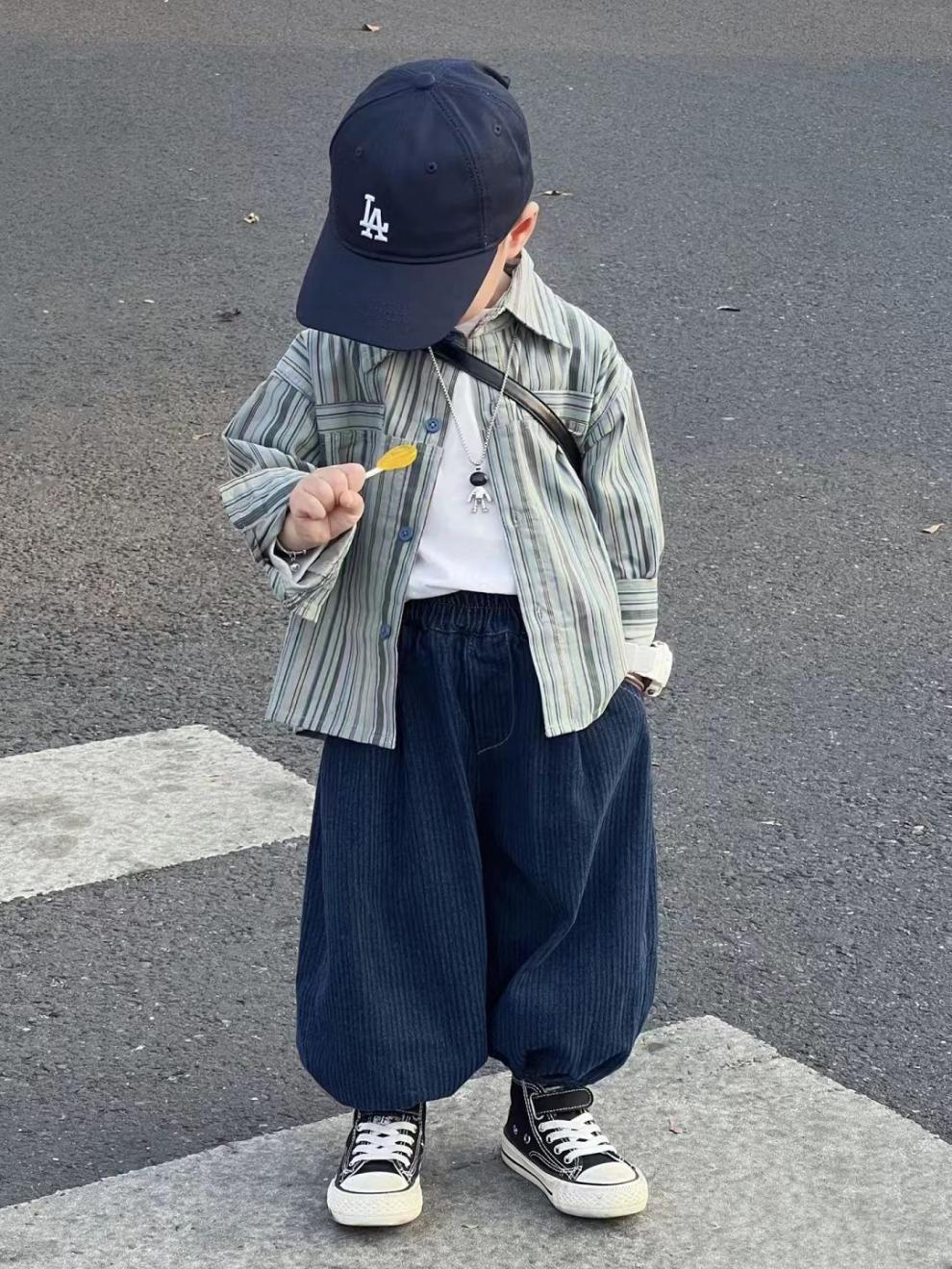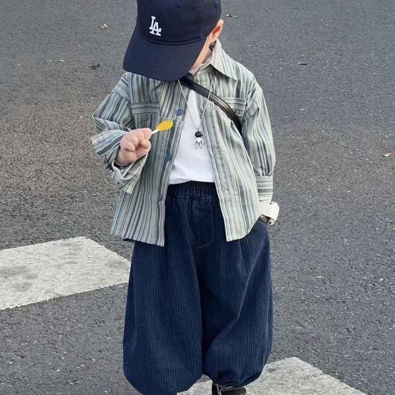 Color: blue two-piece suit, blue striped shirt, blue pants