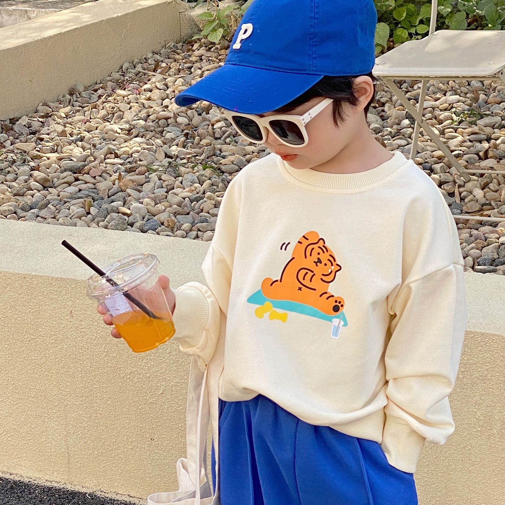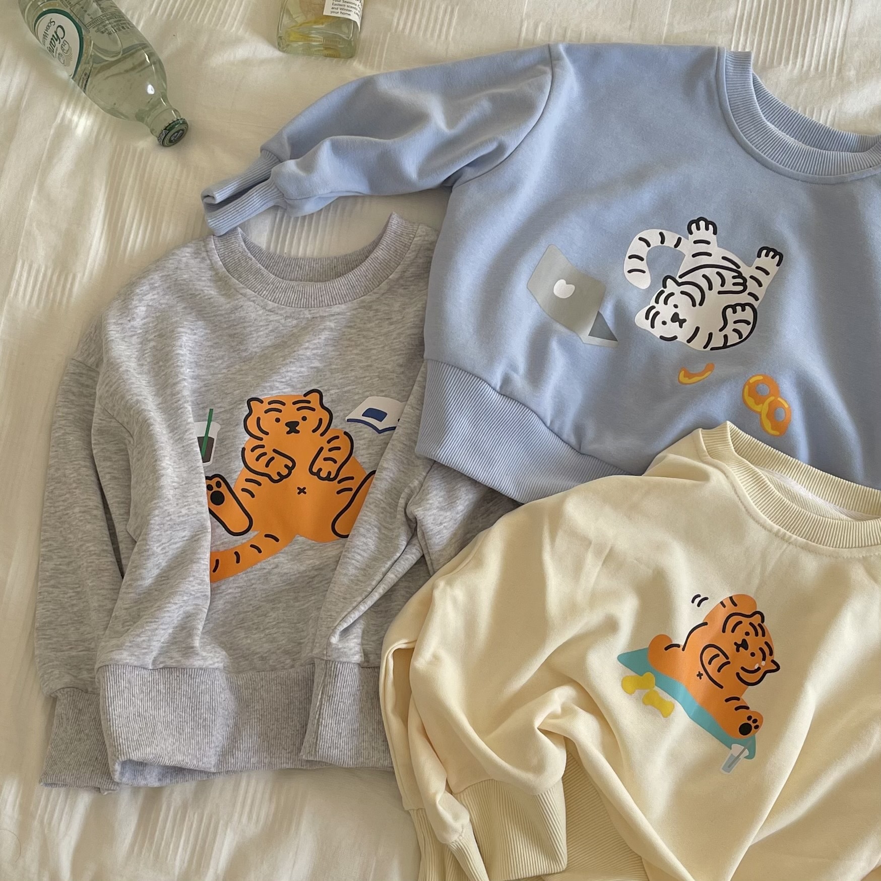 Boys Cartoon Tiger Casual Loose Pullover Short Sweatshirt