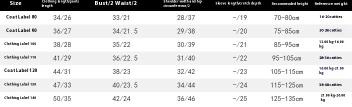 Suitable height: 80,90,100,110,120,130,140