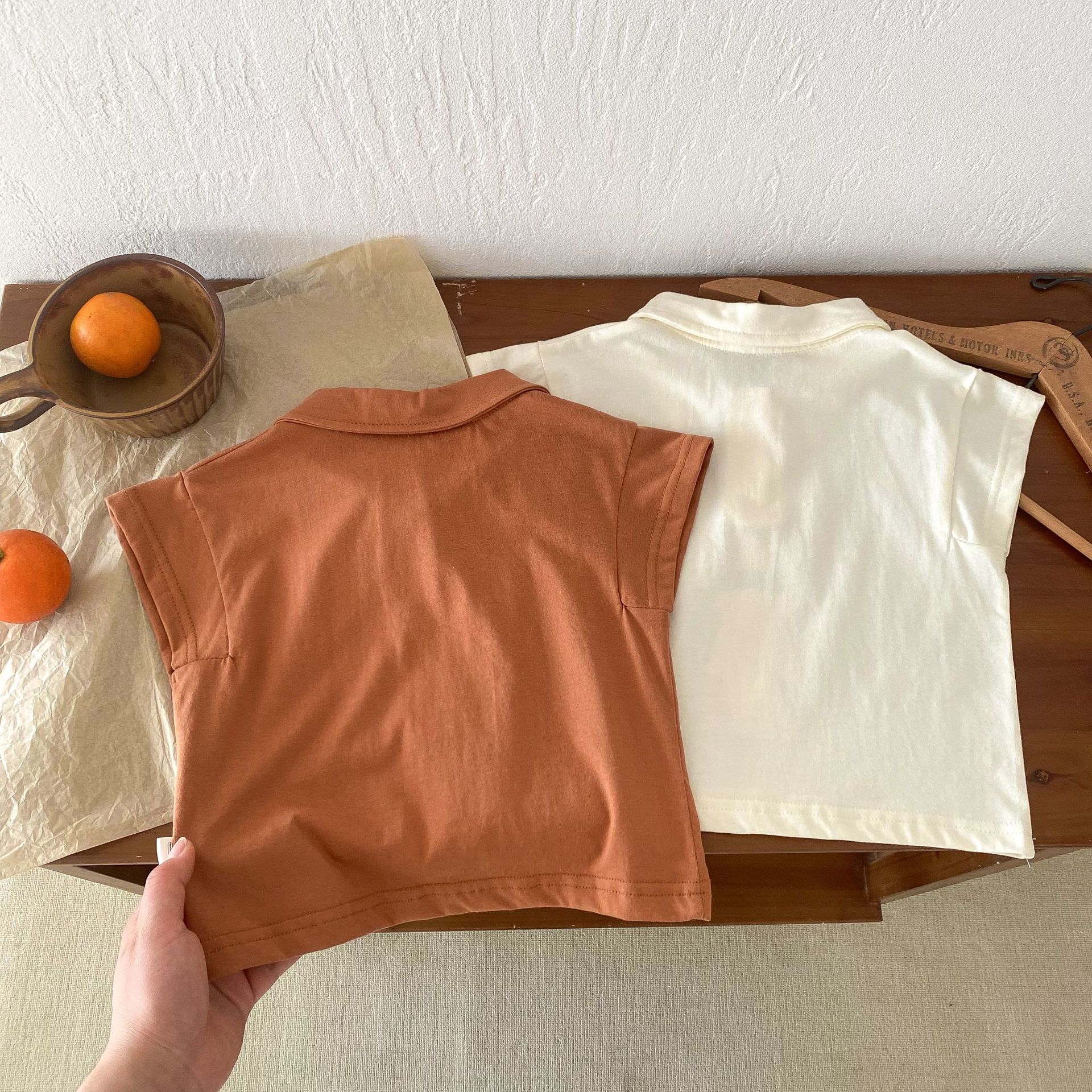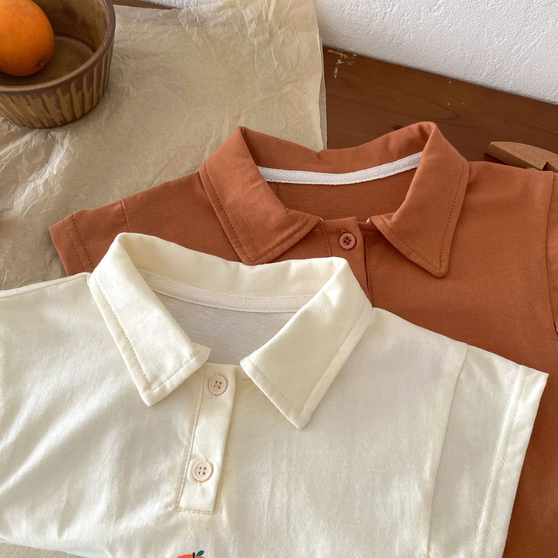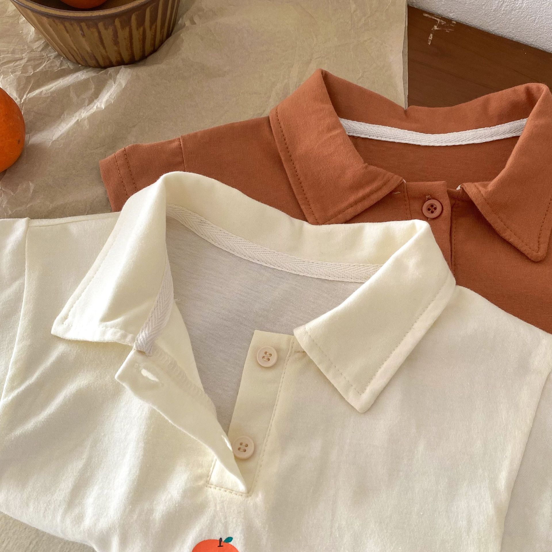 Color: brown T-shirt, apricot T-shirt