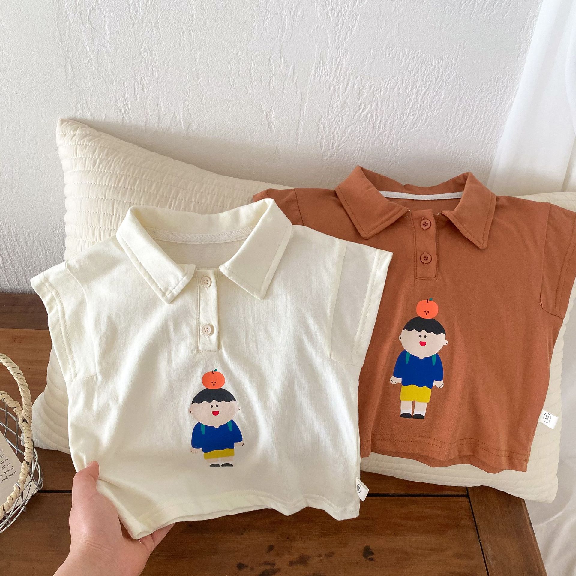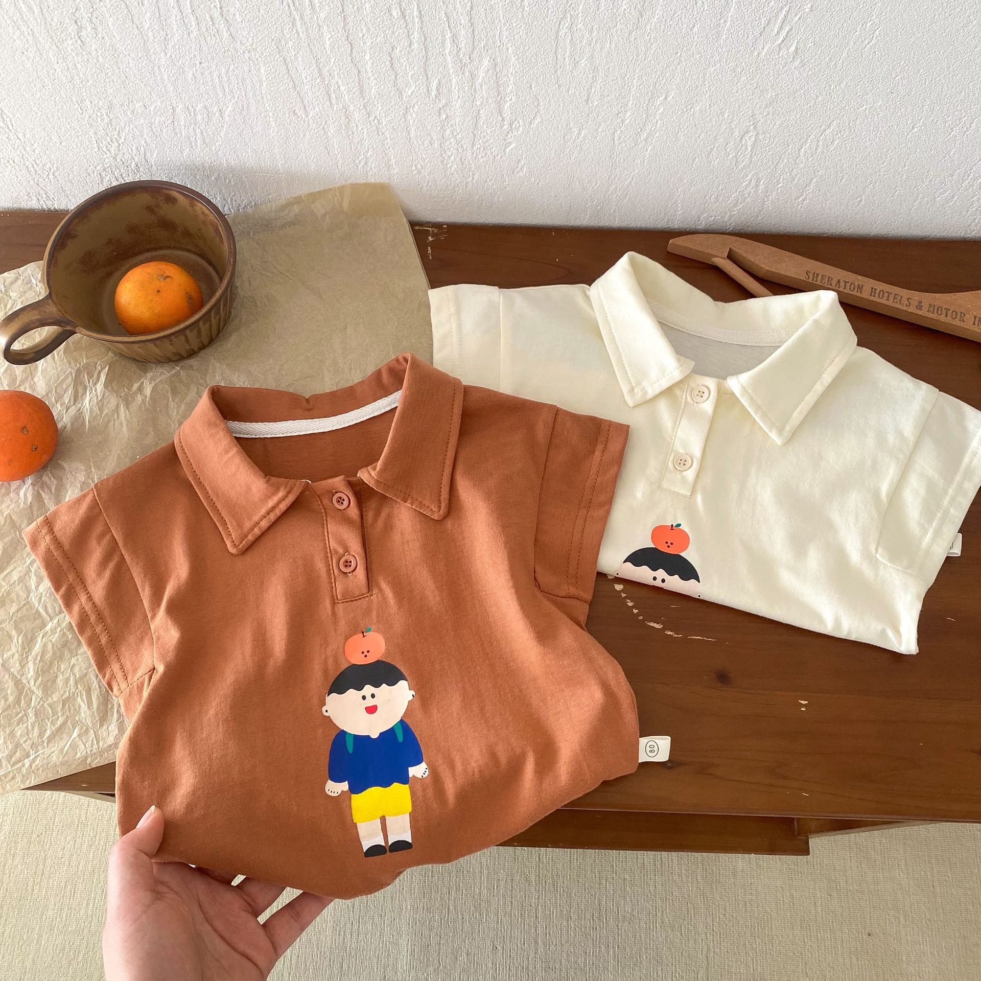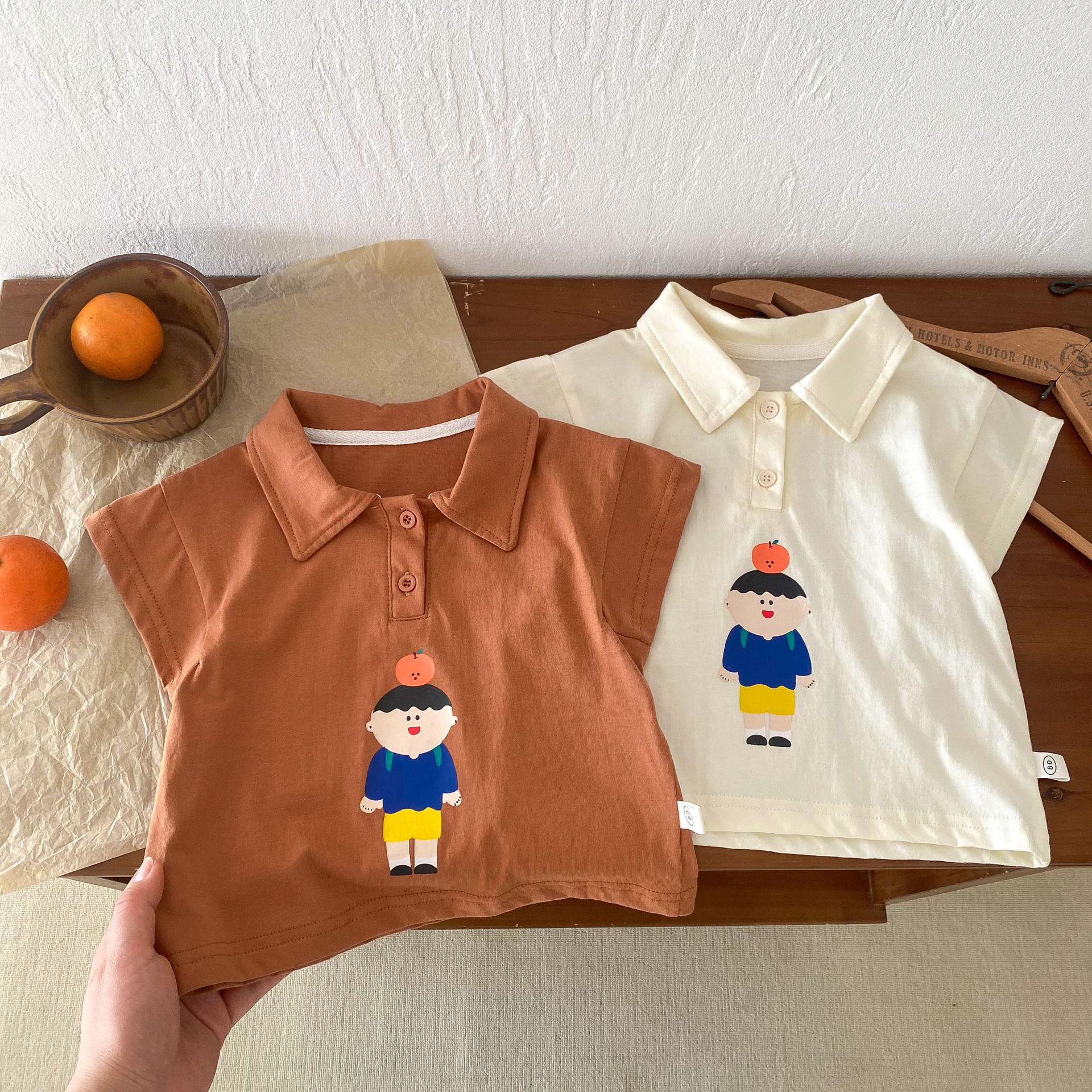 Color: brown T-shirt, apricot T-shirt