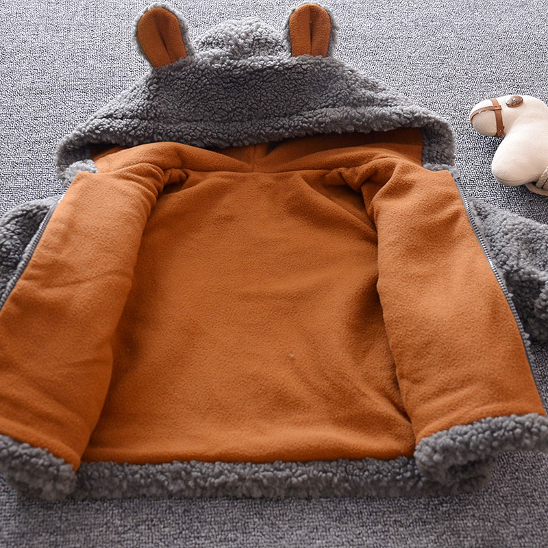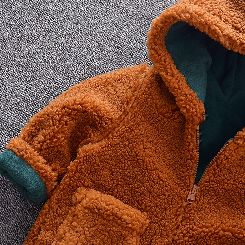 Colors: Standard tan teddy fleece jacket, standard off-white teddy fleece jacket, standard grey teddy fleece jacket