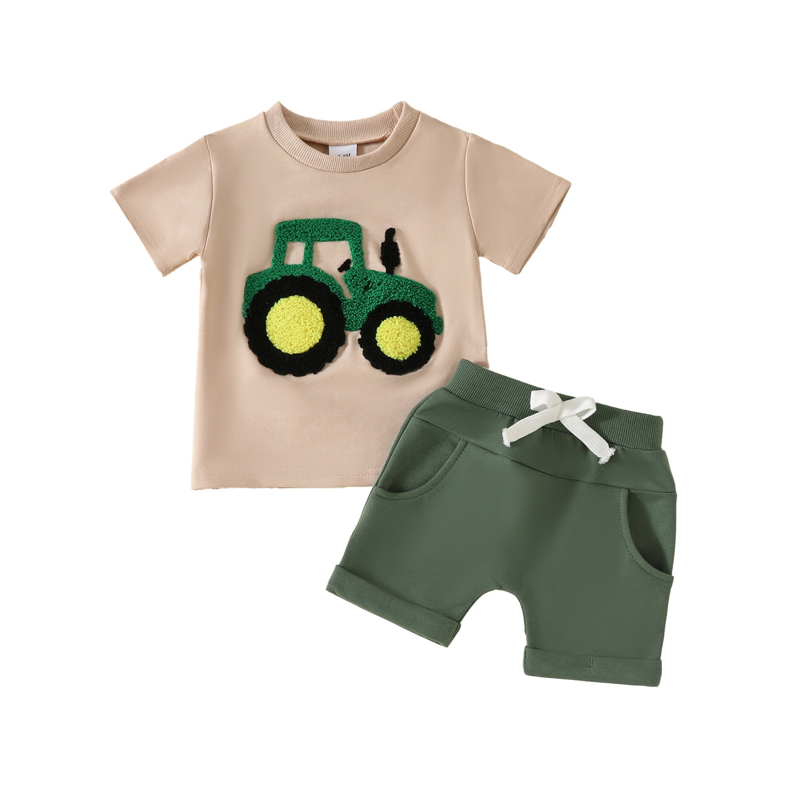 Boy's Clothing Printed Pullover Fashion Round Neck Solid Color Short Sleeve Pocket Shorts