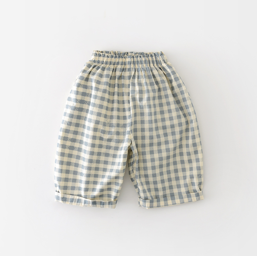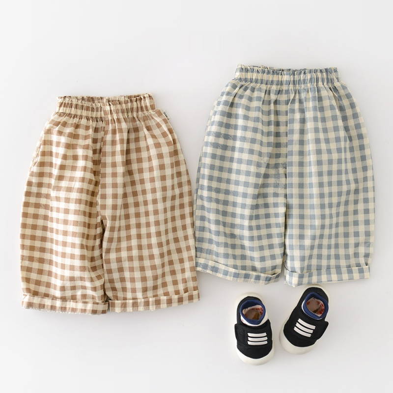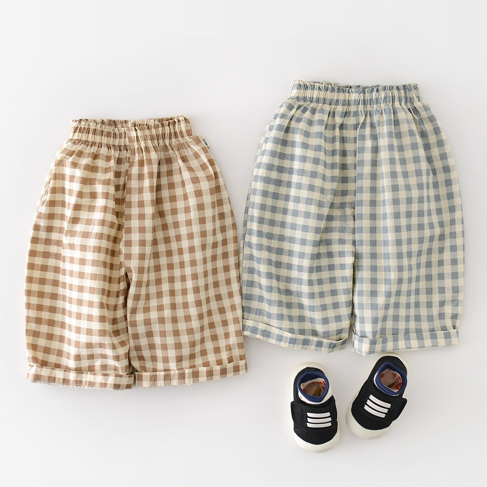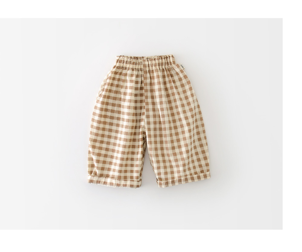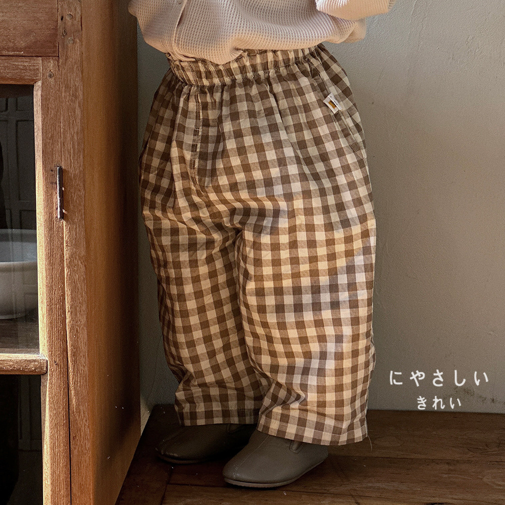 Boys Cotton Loose-fit Plaid Wide-leg Pants