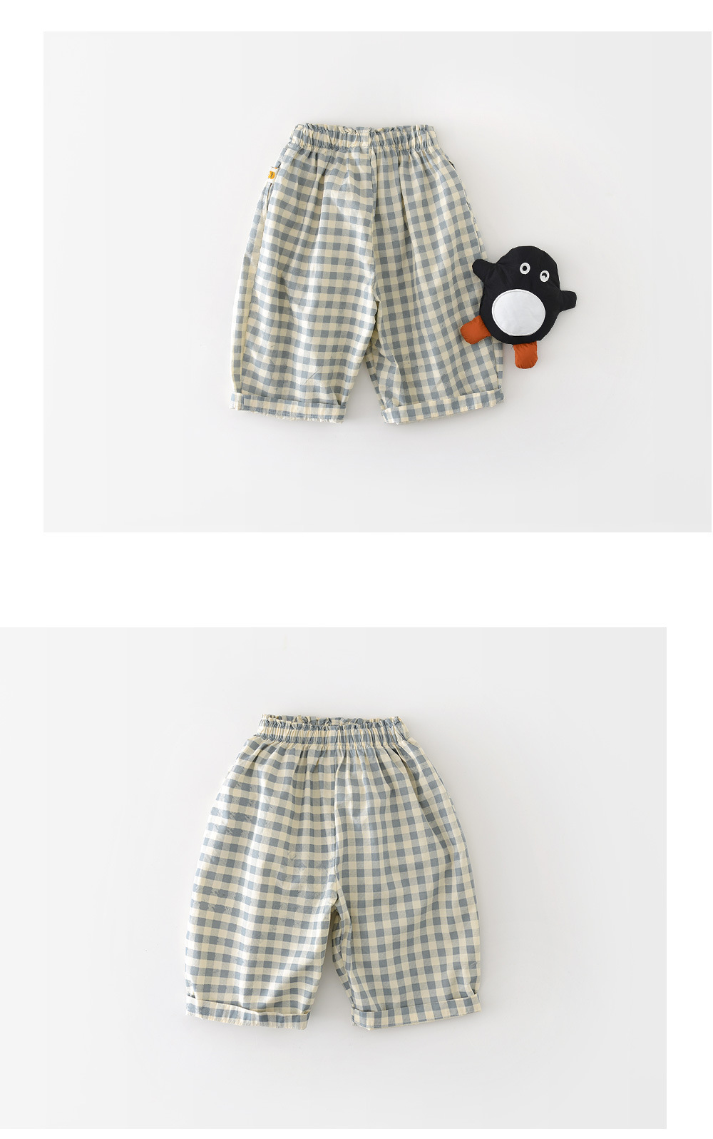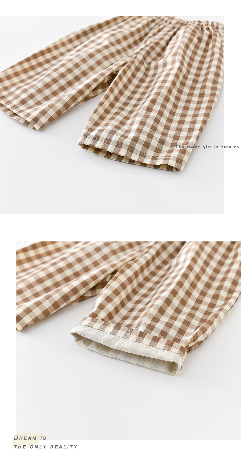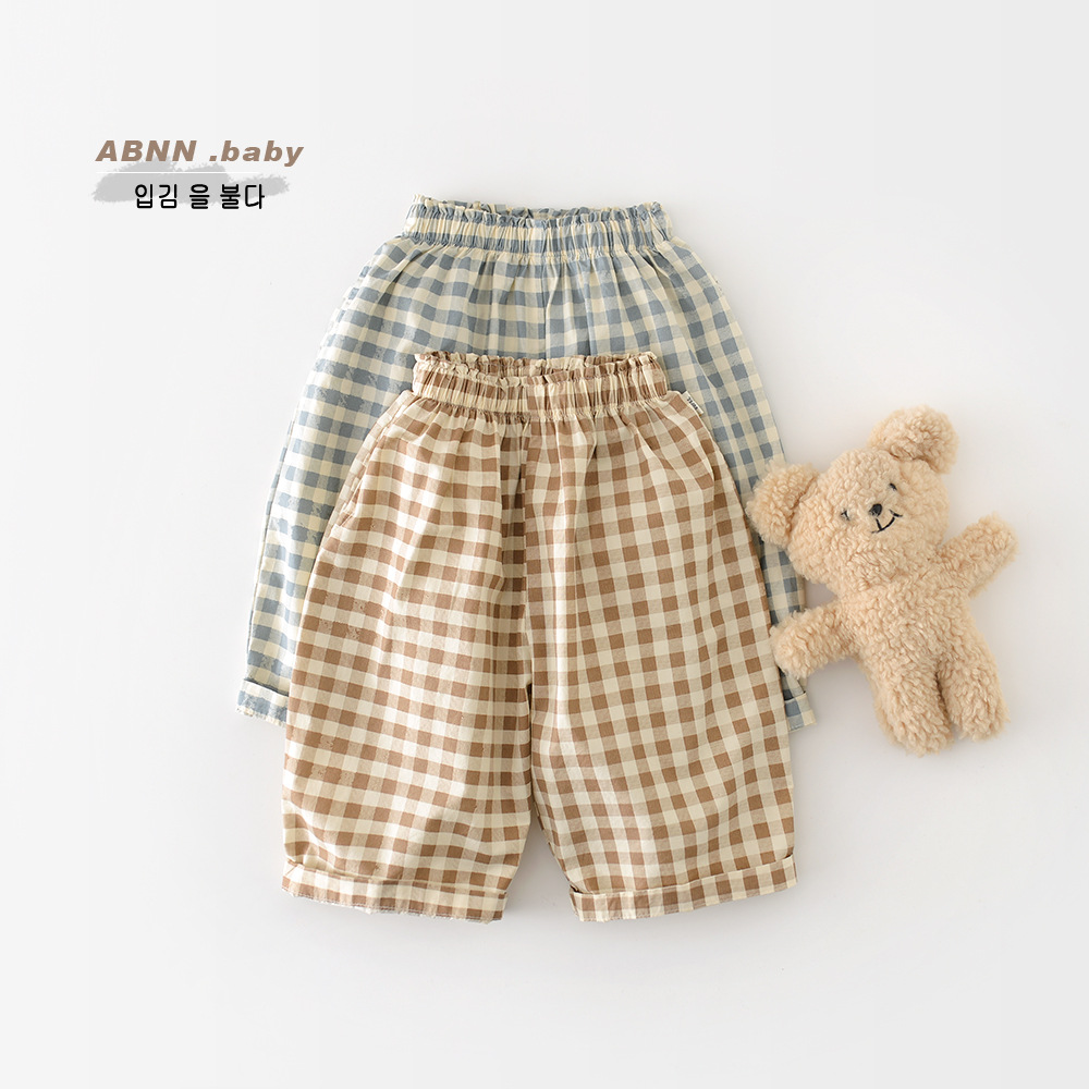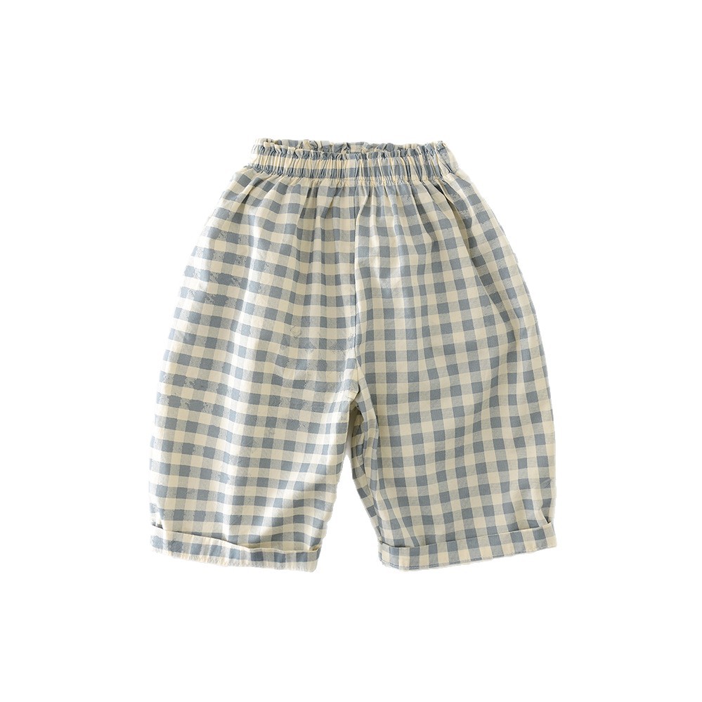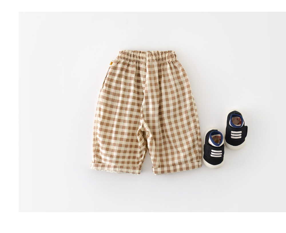 Boys Cotton Loose-fit Plaid Wide-leg Pants