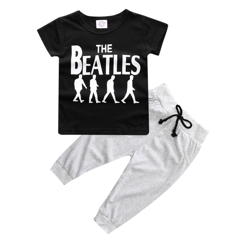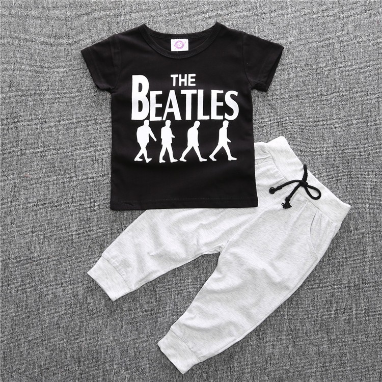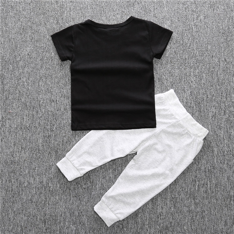 Boy's Cotton Two Piece Set Letter Print Shirt Trousers Baby Suit