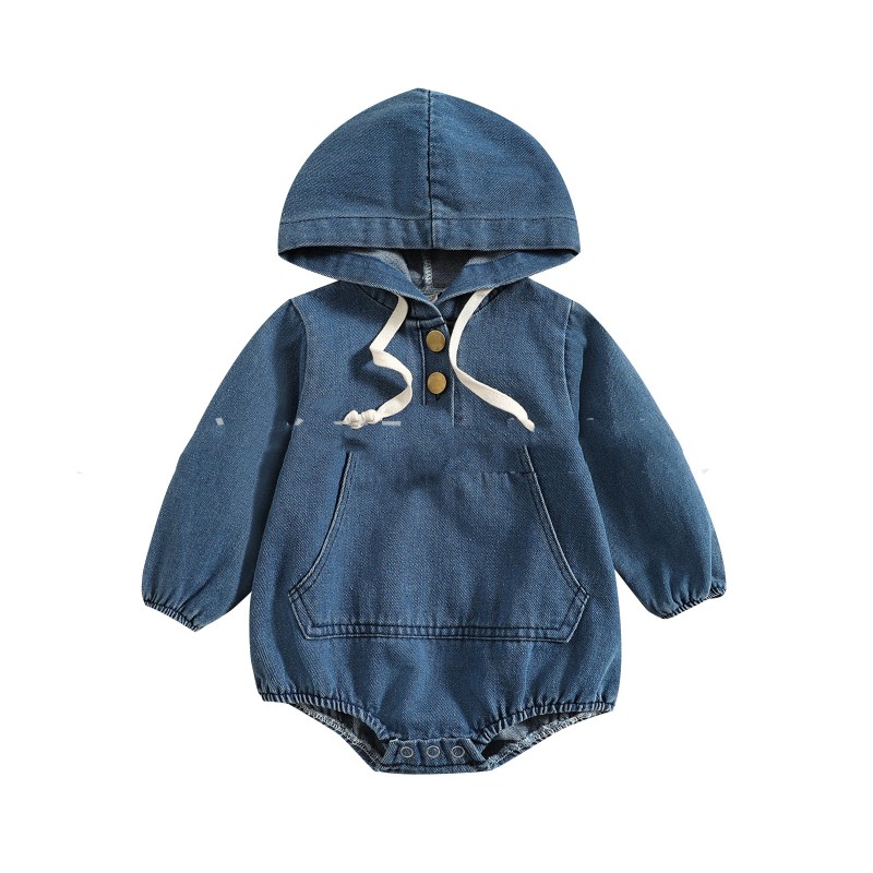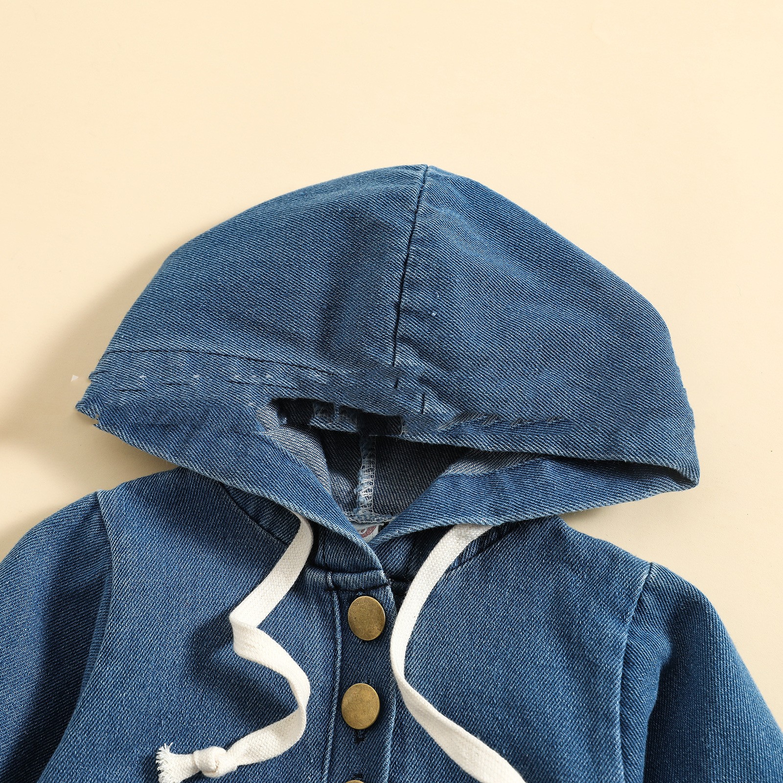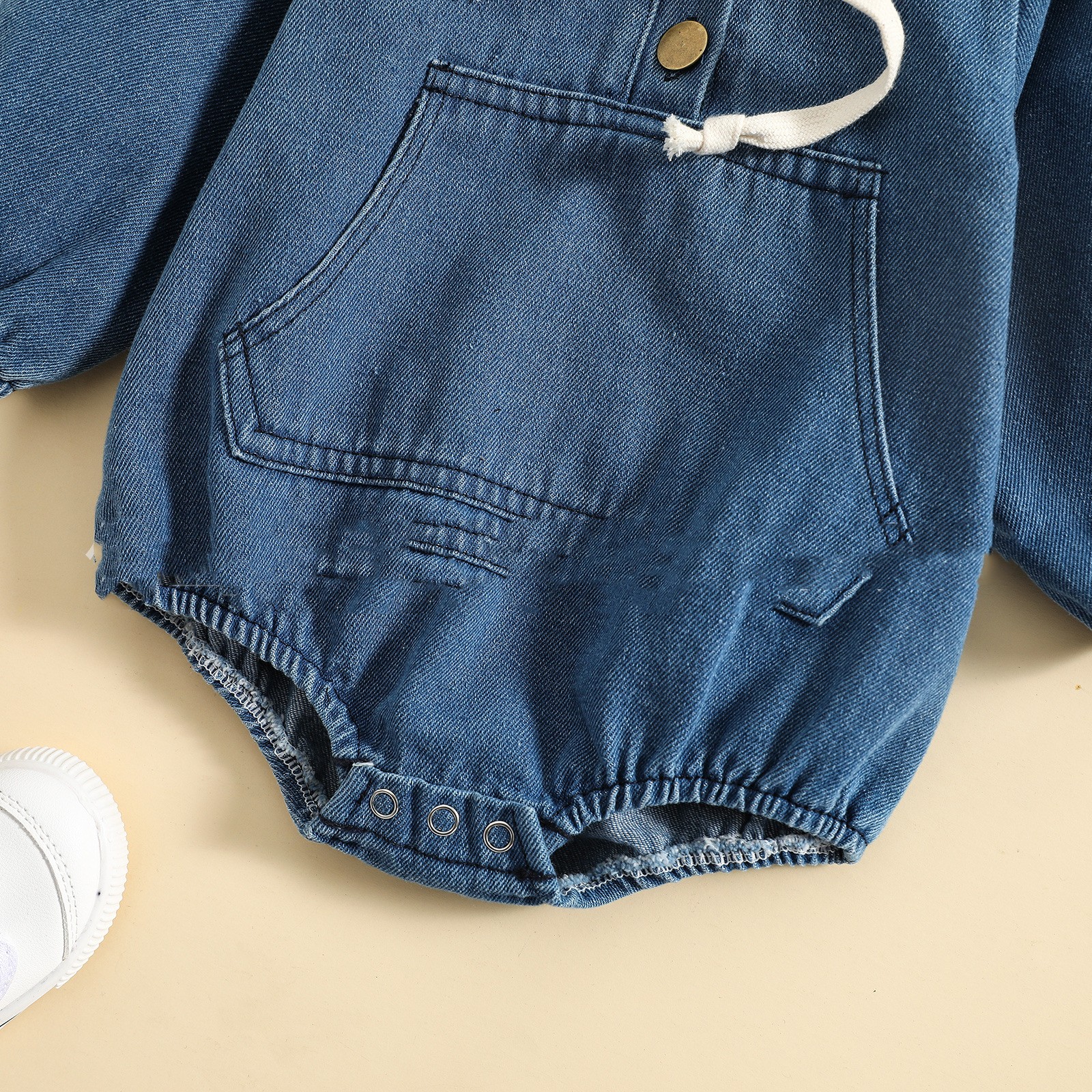 Boys' Denim Hooded Triangle Rompers Outing Jumpsuit