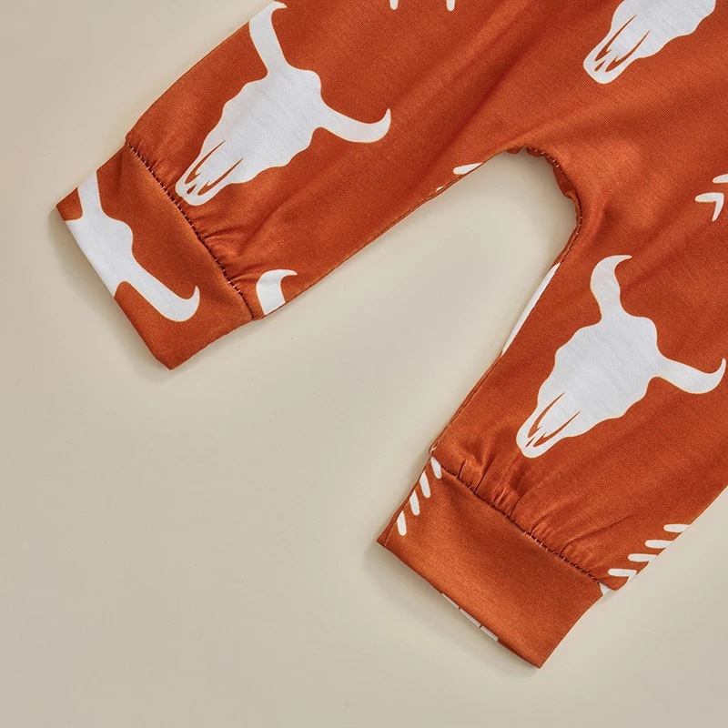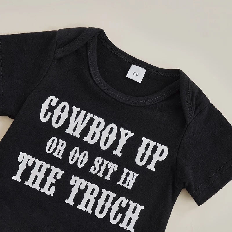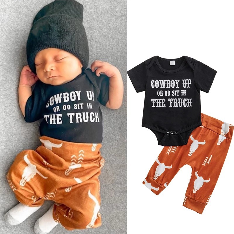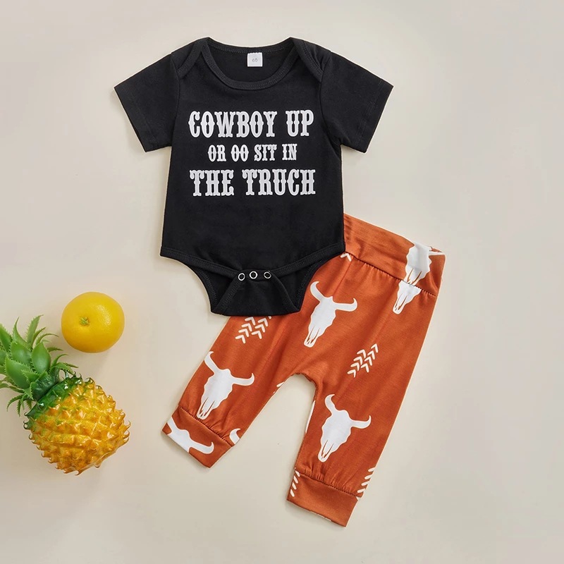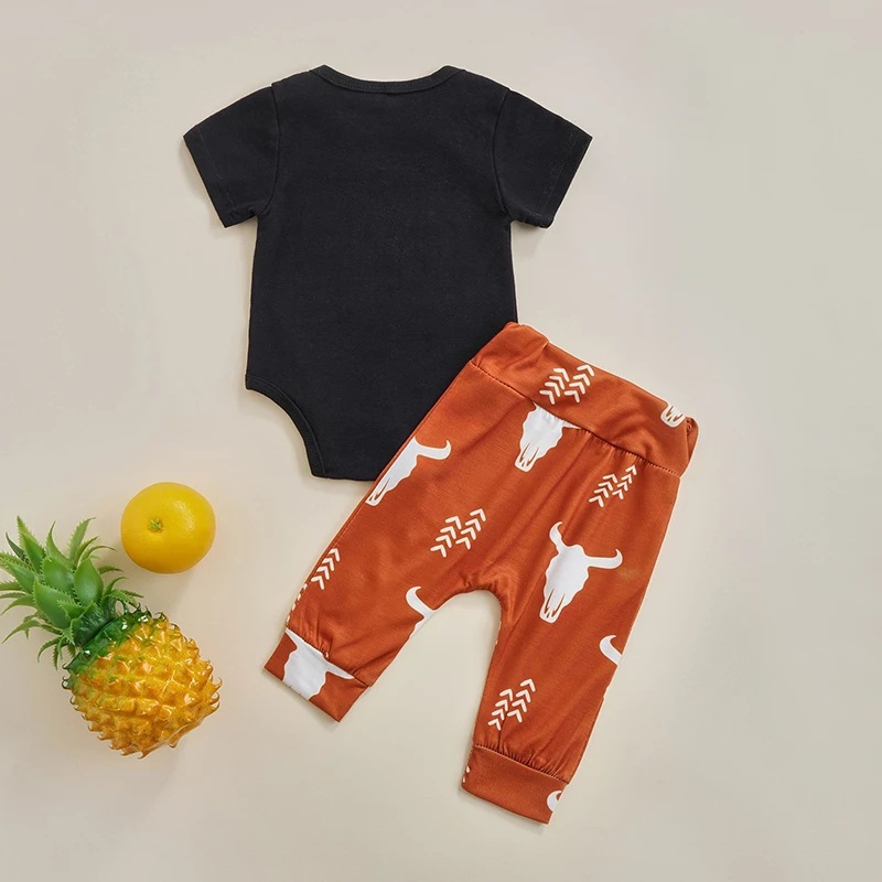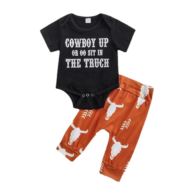 Boys' Letters Short-sleeved Jumpsuit Cow Head Print Pants Two-piece Set