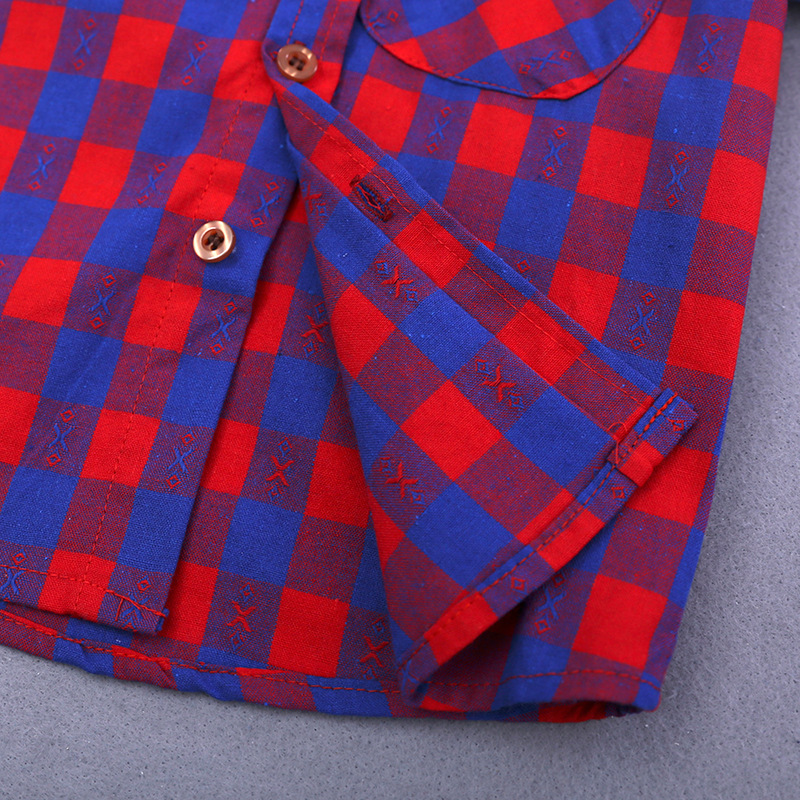 Boy's Long-sleeved Plaid Shirt Denim Trousers Three-piece Set