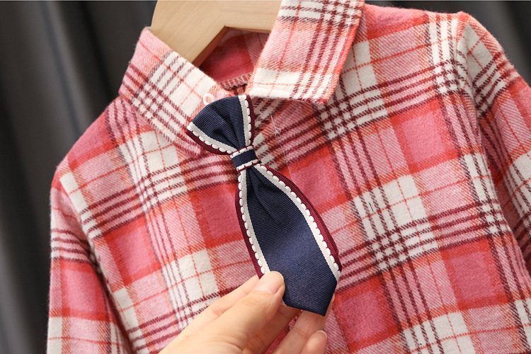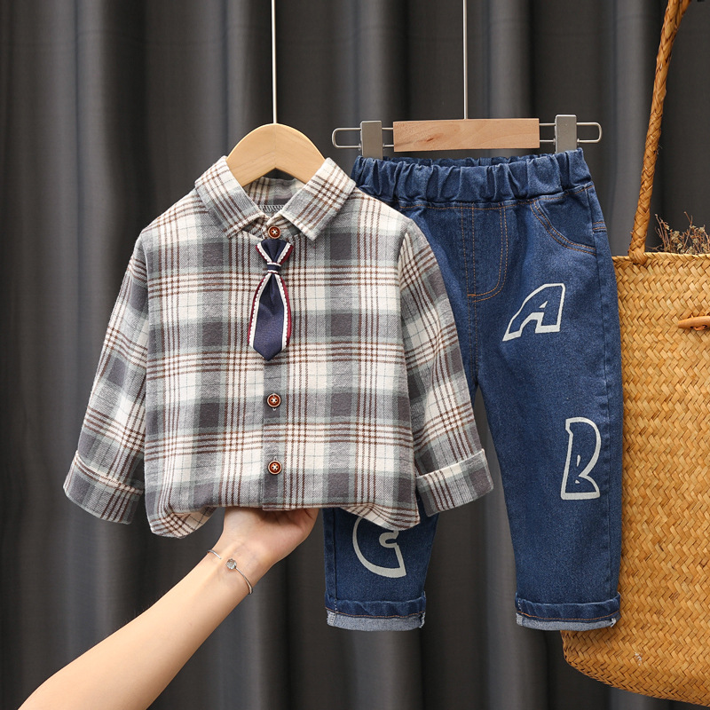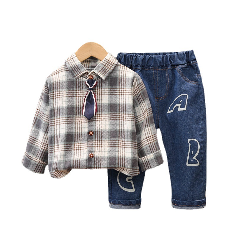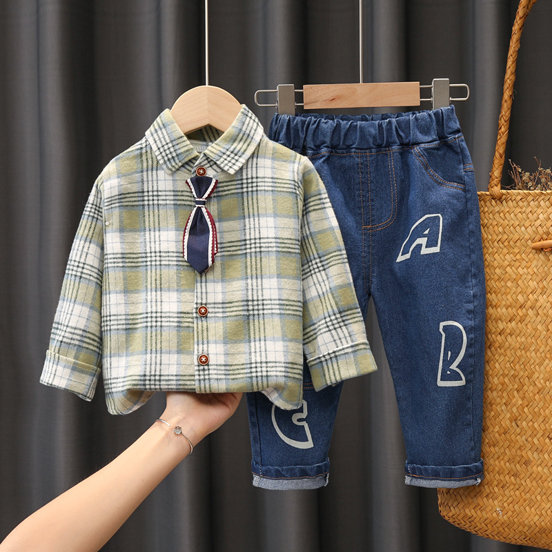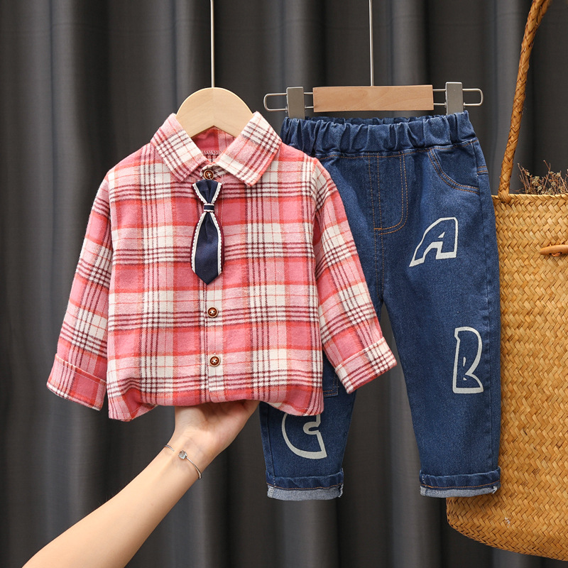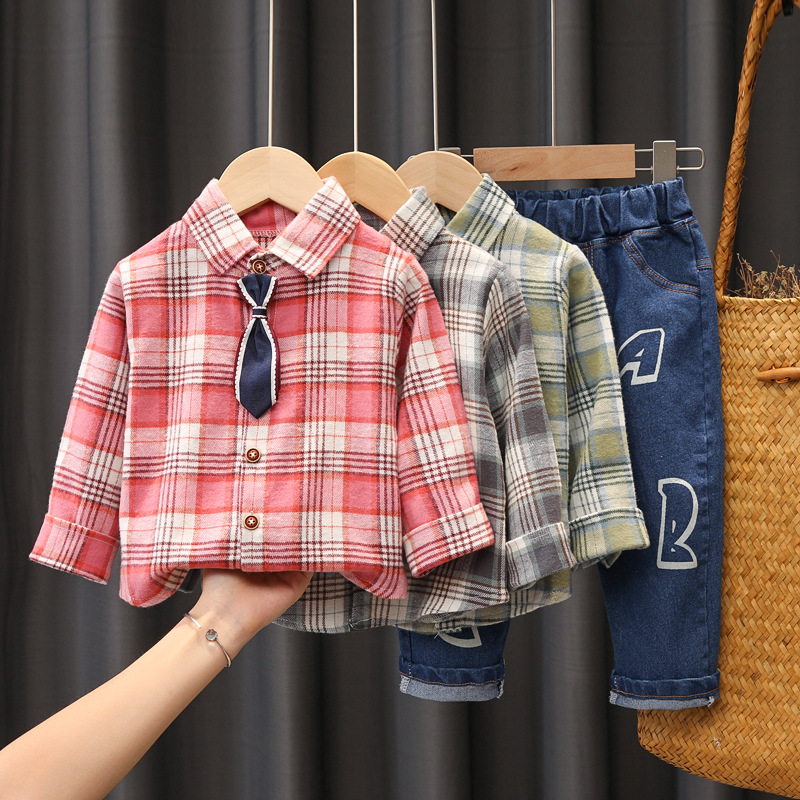 Color: Z tie plaid shirt set pink, Z tie plaid shirt set grey, Z tie plaid shirt set green