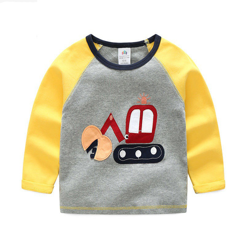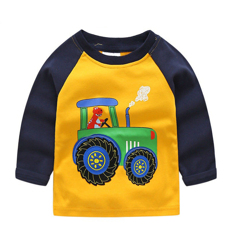 Boys T-shirt Kids Tees Baby Child Boy Cartoon Tops Spring Children Tee Long Sleeve Cotton Cars Trucks Bus Striped Autumn Shirt