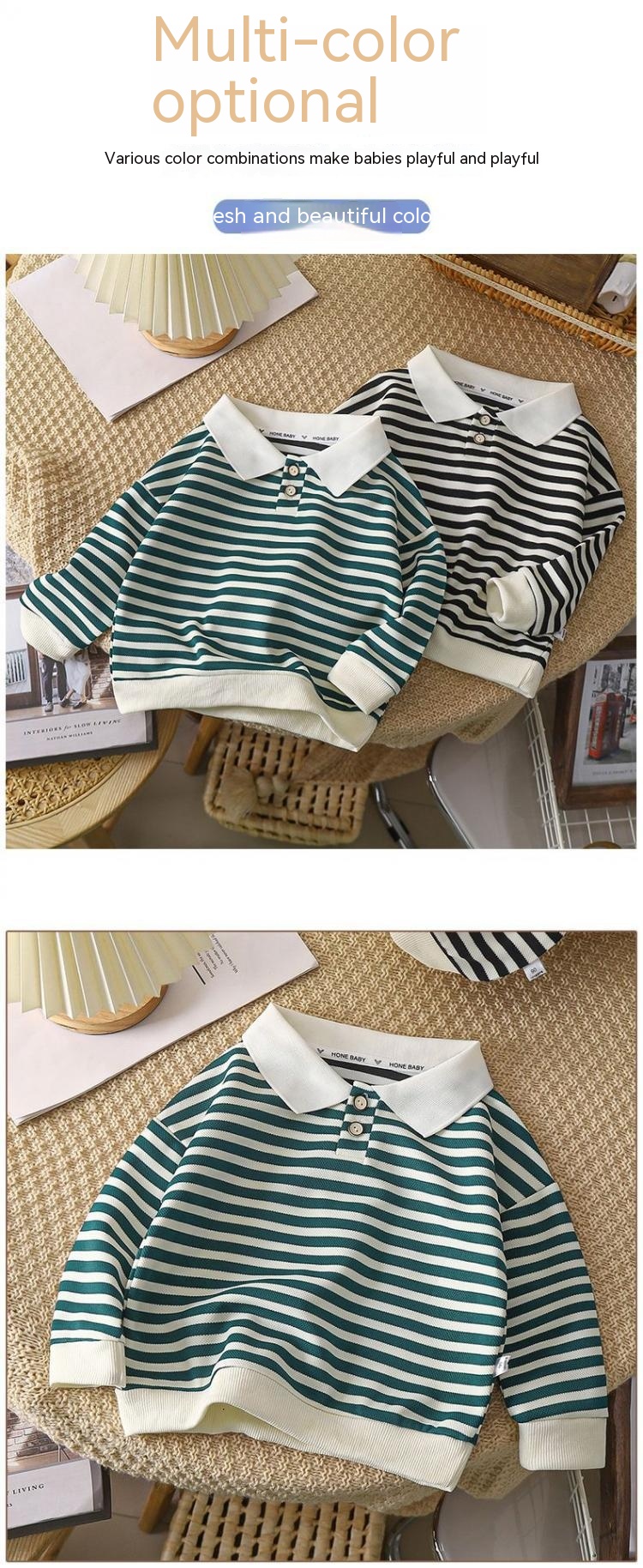 Color: polo shirt-black stripes, polo shirt-green stripes