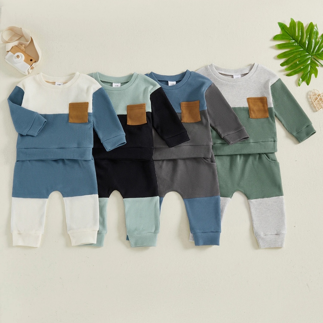Boys' Waffle Color Matching Pocket Two-piece Set