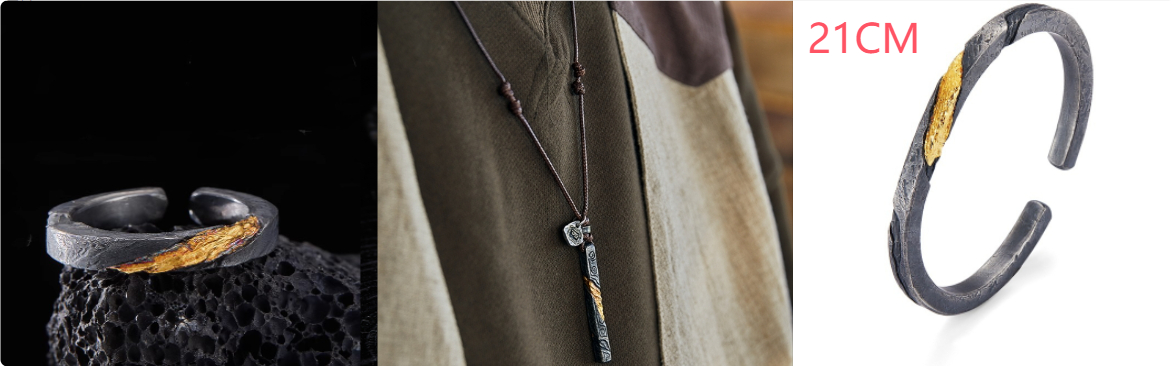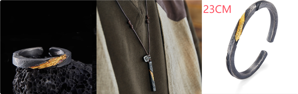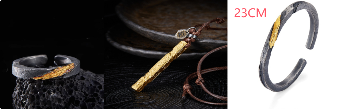 Bracelet Men's Pure Silver Personalized Retro Set In 24K Gold