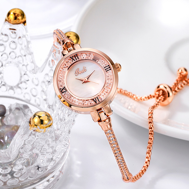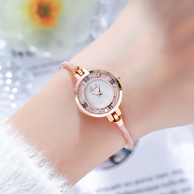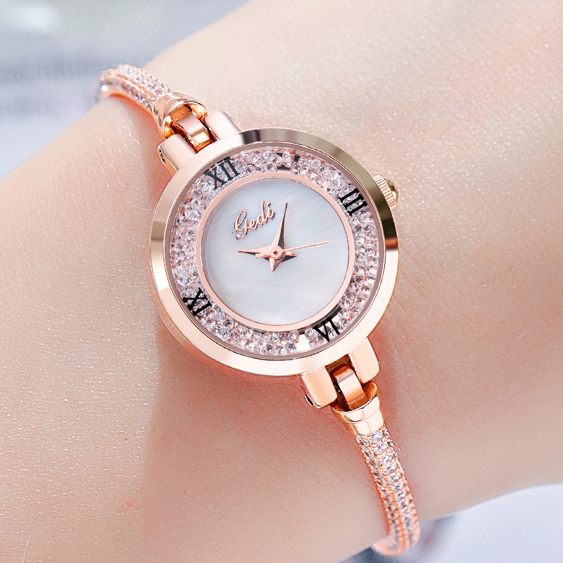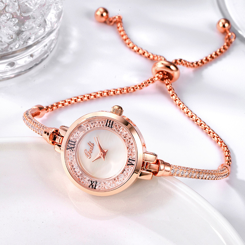 Waterproof: YesWaterproof Performance: 30MMovement Type: QuartzThickness: 7mmDial Diameter: 24mmCrown Type: Spiral CrownTable Bottom Type: OrdinaryMirror Material: Ordinary Glass MirrorStrap Material: Steel StrapDial Shape: RoundCase Material: AlloyColor: Rose Gold Shell White Plate
