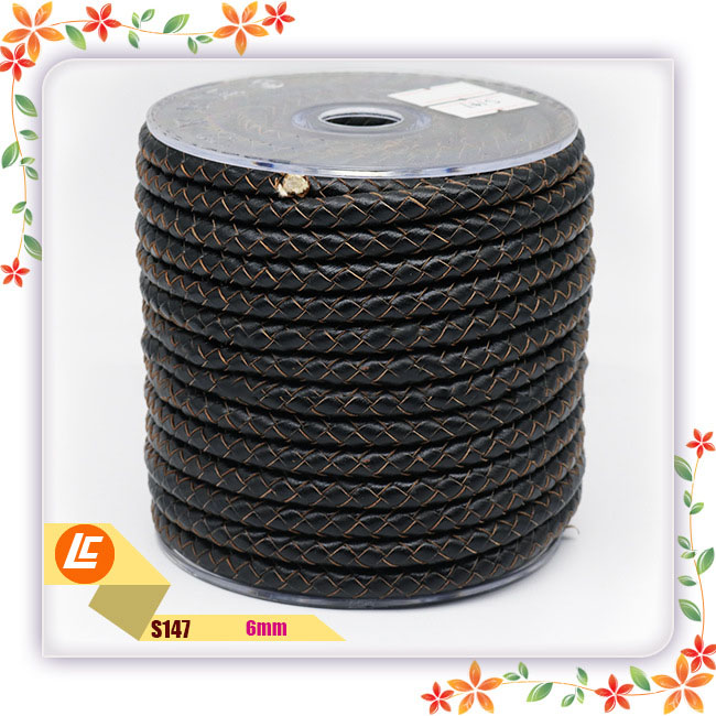 Product Name: Black cowhide 6mm round braided rope