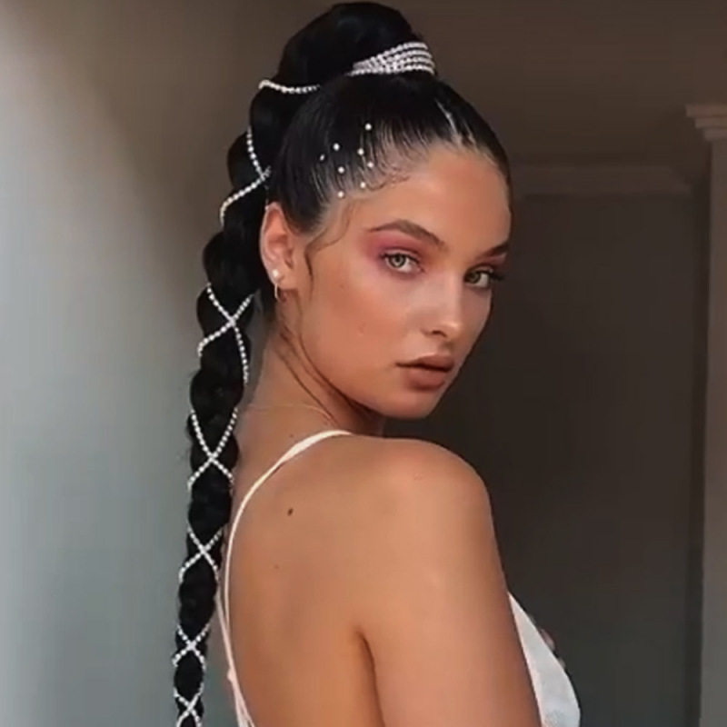 Braided Hair Chain Hip Hop Style Shiny Rhinestone