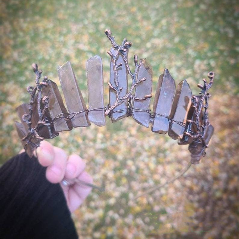 Color classification: Tea crystal ancient bronze wire white k hair hoop ancient bronze branch obsidian black line ancient bronze moon ancient bronze branch white crystal+blue crystal all white K