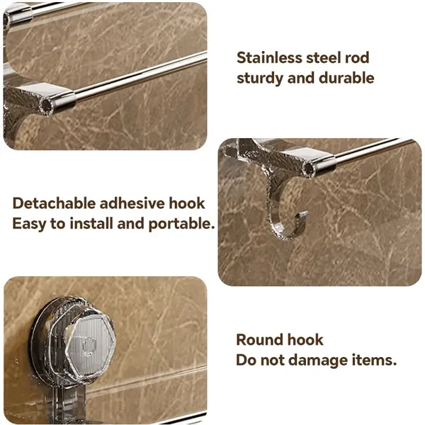 Brand-new Suction Cup Double-bar Towel Rack, Bathroom Hanging Towel Rack, Non-perforated Storage Rack, Towel Hanging Bar, Metal Hanging Rods Are Suitable For Home And Bathroom Decoration