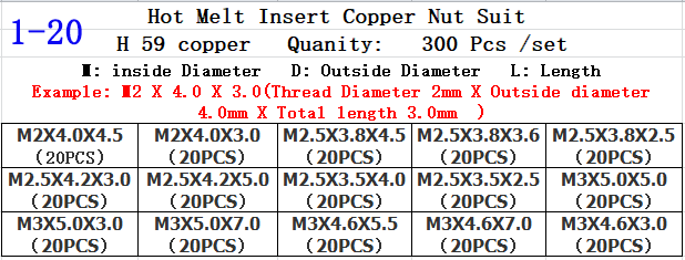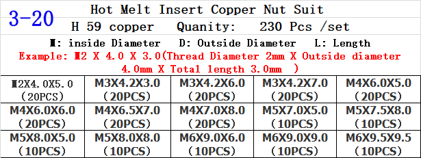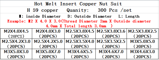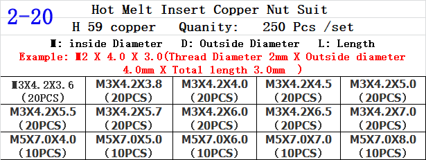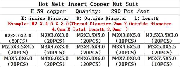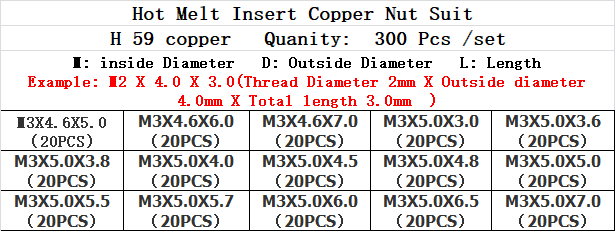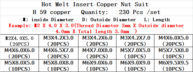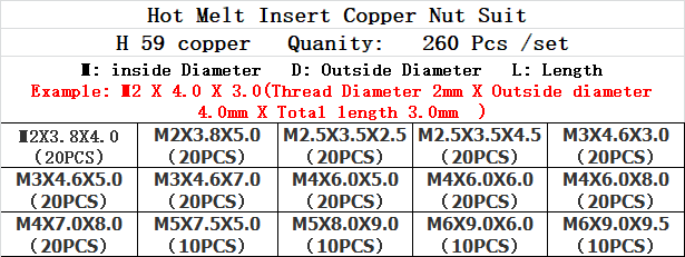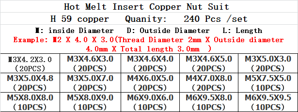Brass Hot Melt Inlaid Nut Hot Forming Copper Thread Kit