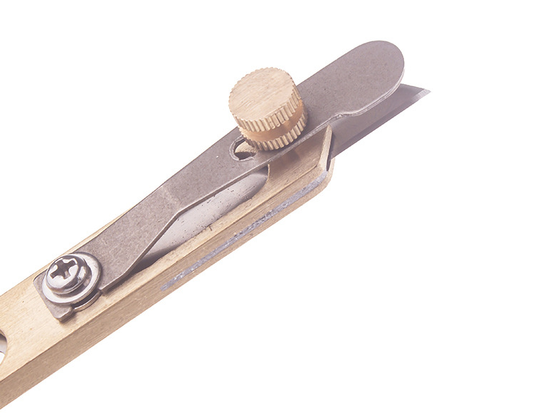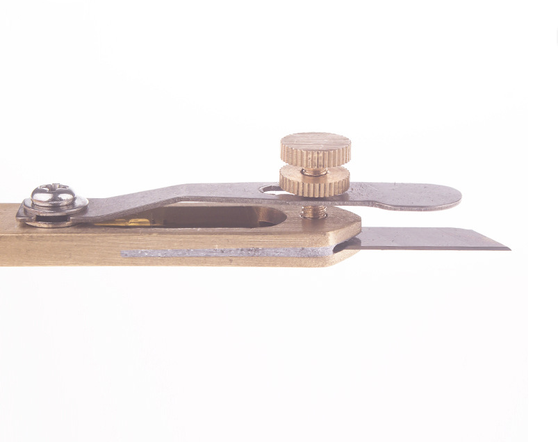 The width of the blade from the edge of the leather can be adjusted by screws.