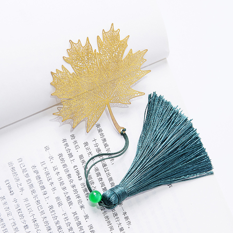 Name: Sycamore Leaf BookmarkMaterial: brass + nylon tasselBookmark: 7.2*7.3*0.04cmTassel: 12*1cm