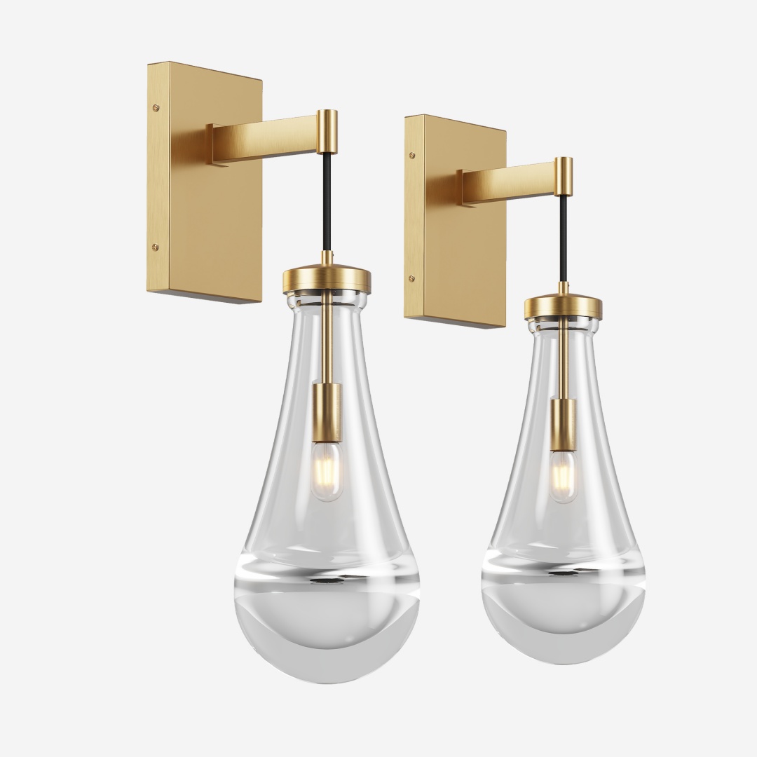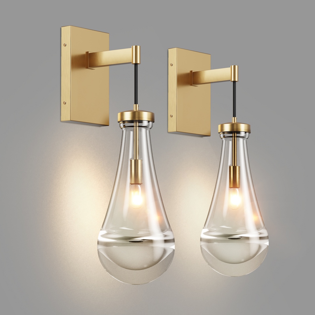 Handmade Raindrop Glass Lampshade: The unique and beautiful raindrop glass shade can not only light up the darkness better but also decorate your house well. Whether it's a modern style decoration or a vintage farmhouse style, these brass wall sconces can fit in perfectly.All-Copper Manufactured Lamp Body: The surface uses a hand-brushed texture treatment to make the gold sconces wall lighting nobler, and the metal surface is coated with an antioxidant coating, which greatly increases the service life of the wall lamp. The thickened hand-blown glass shade at the bottom can better illuminate the soft light and create a comfortable, natural, and warm atmosphere.More Energy Efficient: LED bulbs are more energy efficient, have less heat, and have a long service life. The normal service life of the indoor wall sconce is up to 50,000 hours.Multiple Color Options: Our wall light fixtures provide you with three different color options. They are brushed brass, bronze, and brushed nickel. Different colors of wall lamps can match different decoration styles. There will always be one that is suitable for your house. Luxury wall sconces lighting is also perfect as gifts for others, such as Christmas gifts, birthday gifts, Thanksgiving gifts, etc.