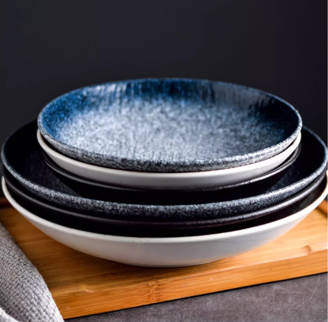 Color classification: 8-inch rock pattern deep plates-purplish blue 8-inch round deep plates-quicksand black 8-inch rock pattern deep plates-sesame gold 10-inch rock pattern deep plates-purplish blue 10-inch rock pattern deep plates-quicksand black 10-inch rock grain deep plates-sesame gold