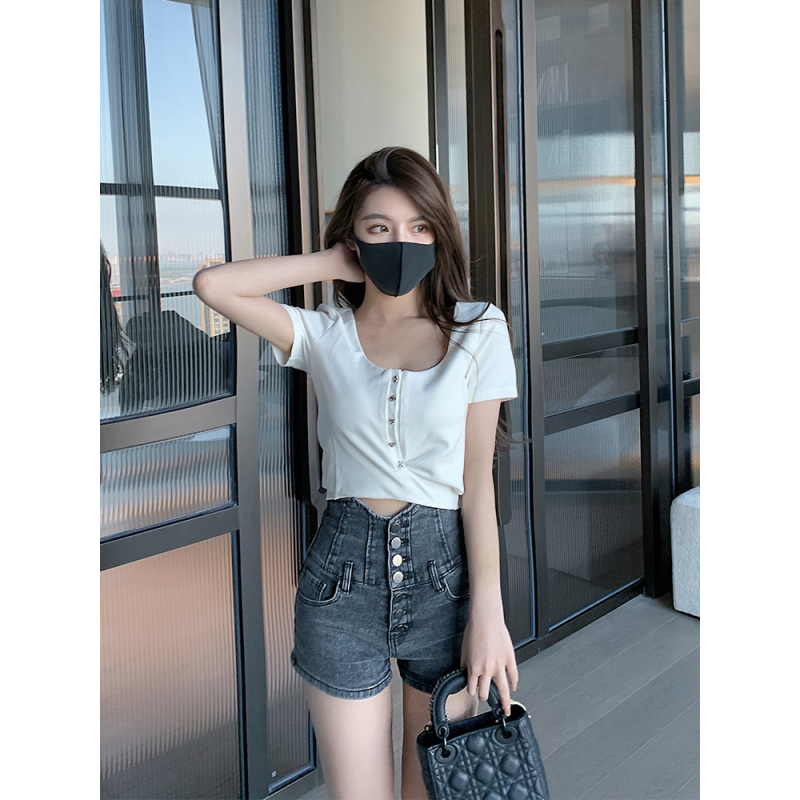 Breasted Denim Shorts For Women''s Summer New Slim Ultra-High Waist Tuck