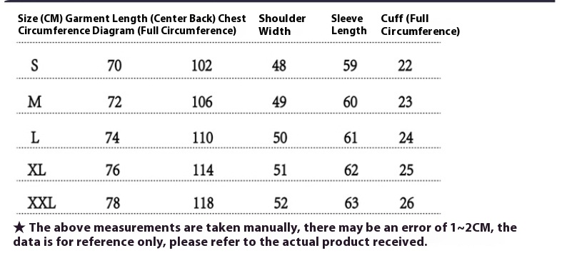 1. Asian sizes are 1 to 2 sizes smaller than European and American people. Choose the larger size if your size between two sizes. Please allow 2-3cm differences due to manual measurement.