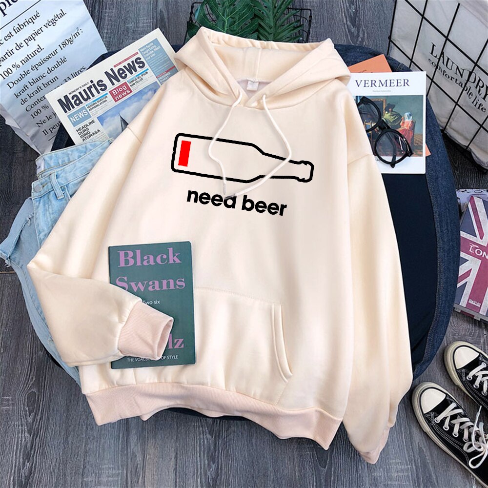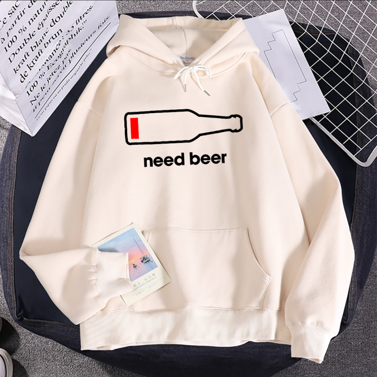 Breathable Casual Women's Hoodie Sweatshirt With Beer Print