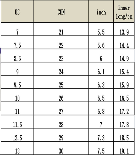 Sizes: 21, 22, 23, 24, 25, 26, 27, 28, 29, 30