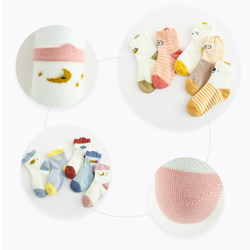 Children's socks size: 0-6 months (recommended foot length 8-10CM), June-December (recommended foot 10-12CM), 1-3 years old (recommended foot length 12-14CM), 3-5 years old ( Recommended foot length 14-16CM), 5-7 years old (recommended foot length 16-18CM)