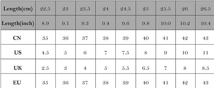 1. Asian sizes are 1 to 2 sizes smaller than European and American people. Choose the larger size if your size between two sizes. Please allow 2-3cm differences due to manual measurement.
