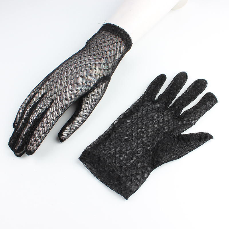 Material: OtherUse classification: clothing glovesApplicable gender: femaleFunction: SunscreenPattern: latticeStyle: Split finger gloves