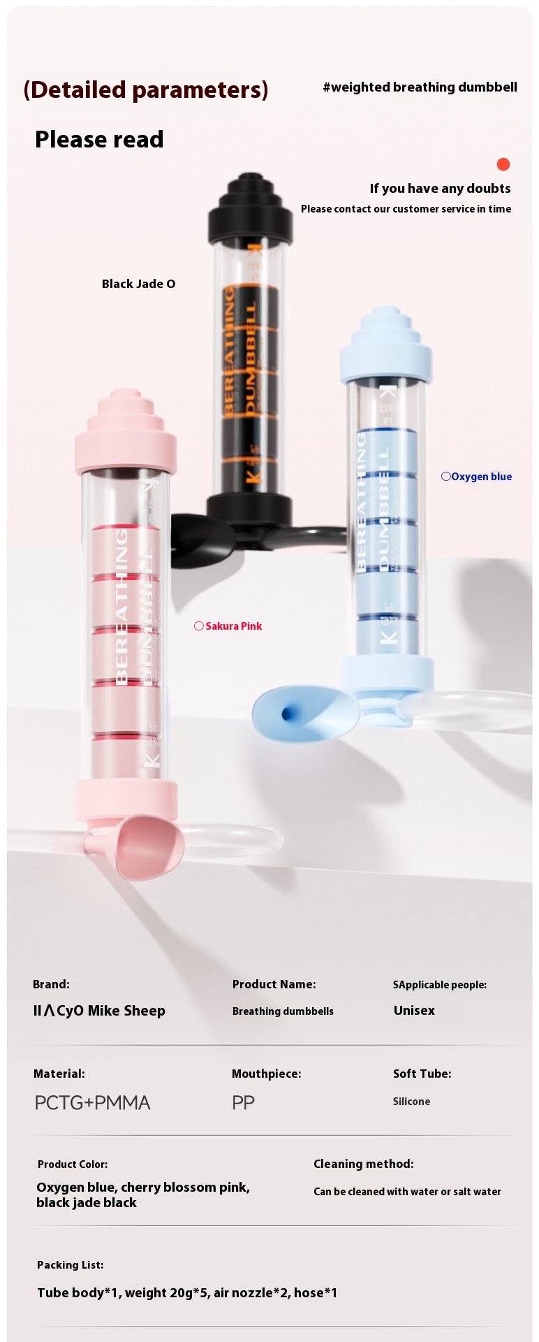 Specifications: Cherry blossom powder-breathing dumbbell-upgraded, oxygen Blue-breathing dumbbell-upgraded, dark jade black-breathing dumbbell-upgraded